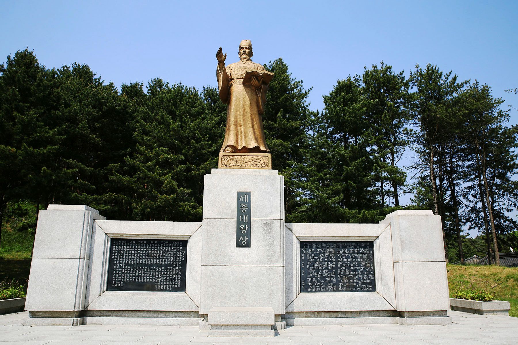 정문에 들어서면 오른쪽에는 재실과 세종대왕 동상이 있고,