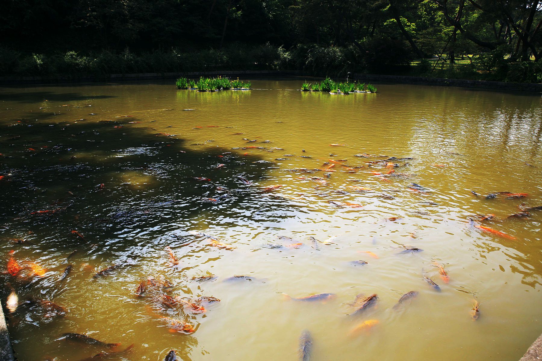 주위에 소나무가 심어져 있어, 물고기 구경도 하며 잠시 쉬어가기 좋습니다. ^^