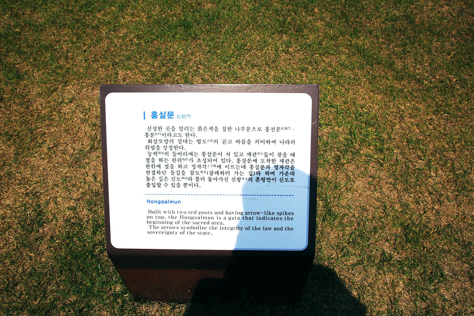 릉, 원, 궁전등의 정면에 세우던 문으로 신성한 구역임을 표시하는 상징물입니다.