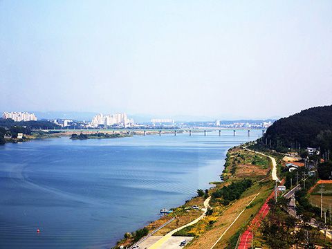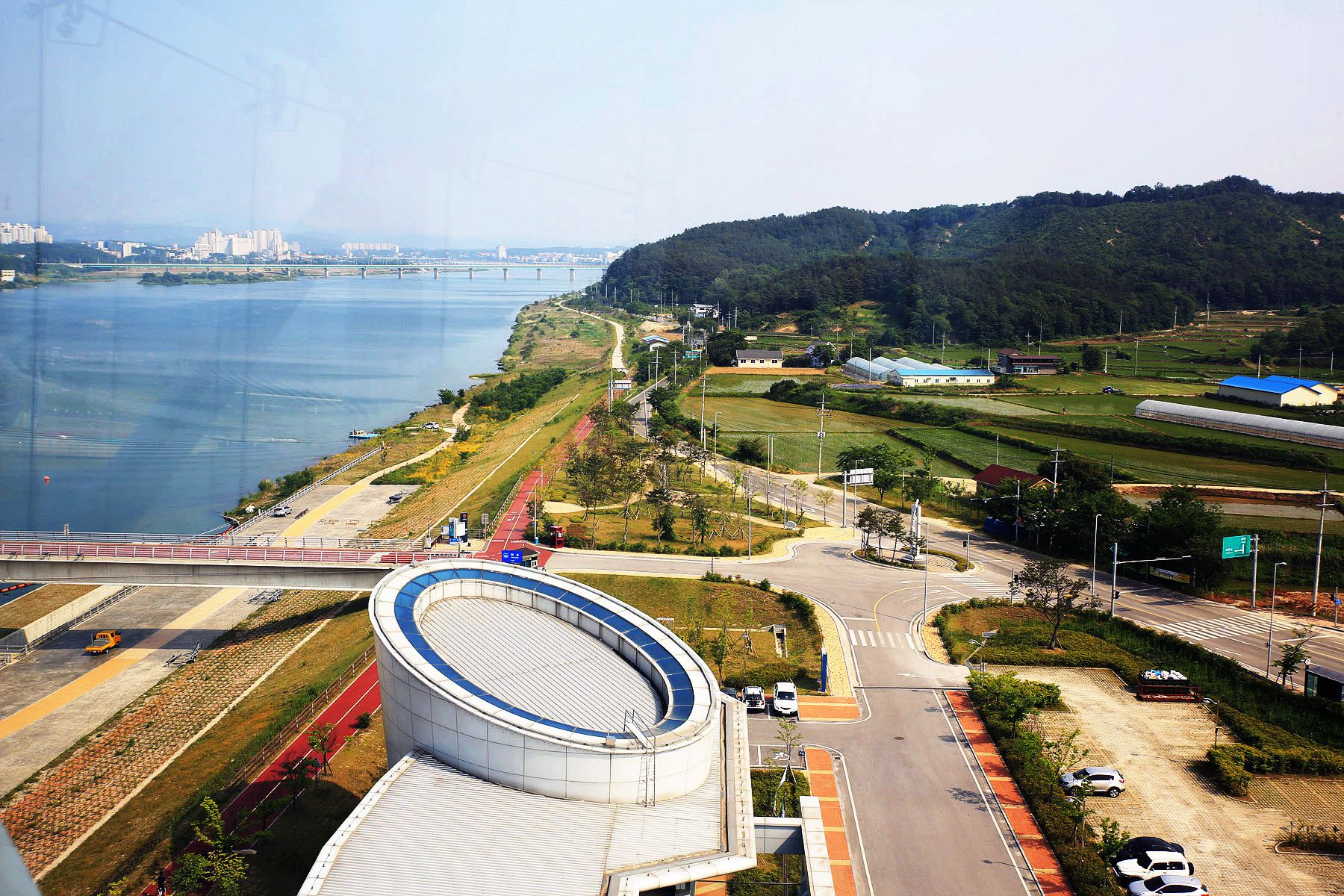 남한강의 잔잔한 물결과 조용하고 여유로운 농촌풍경의 조화가 아름다운 여주보전망대로