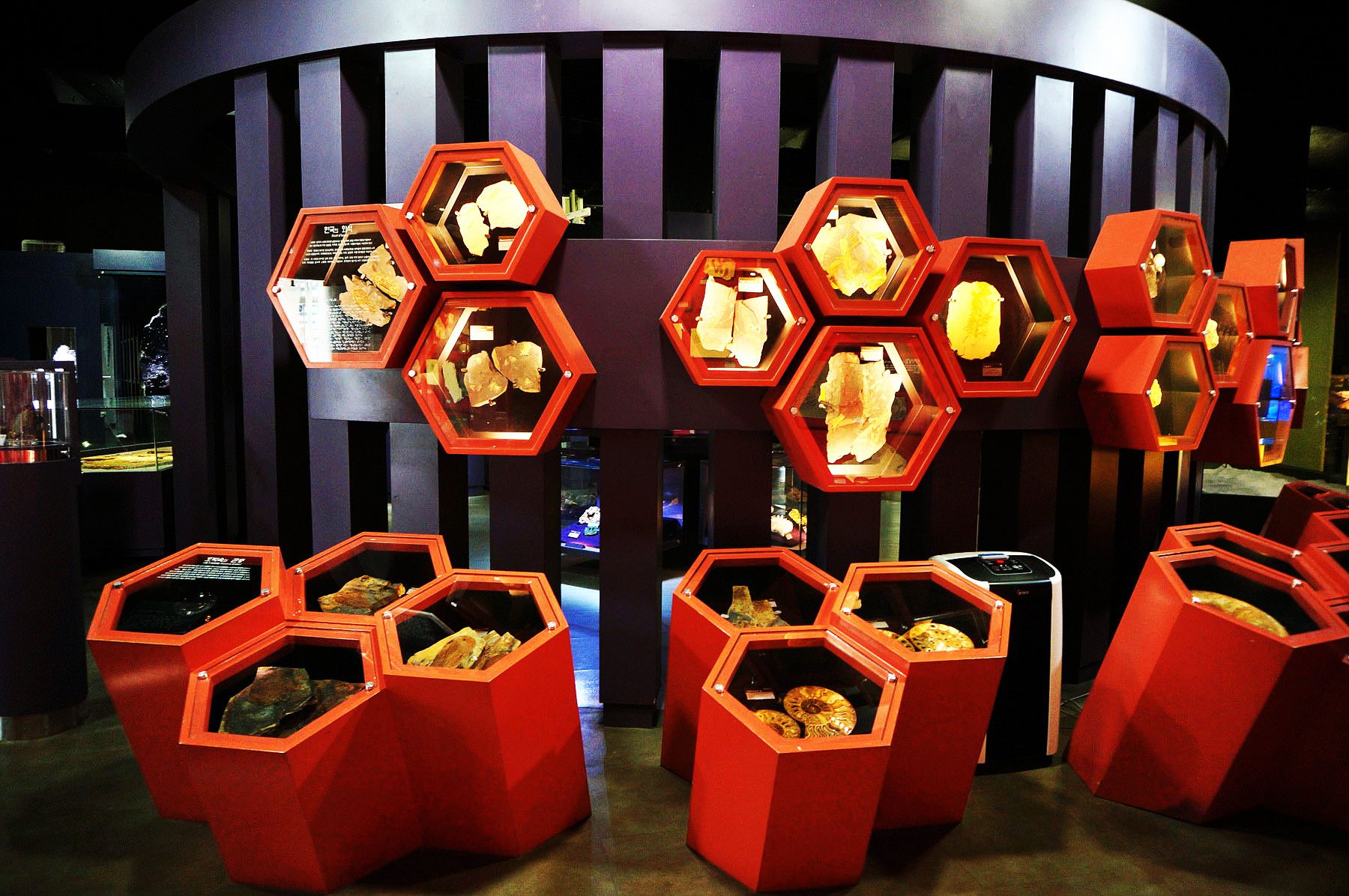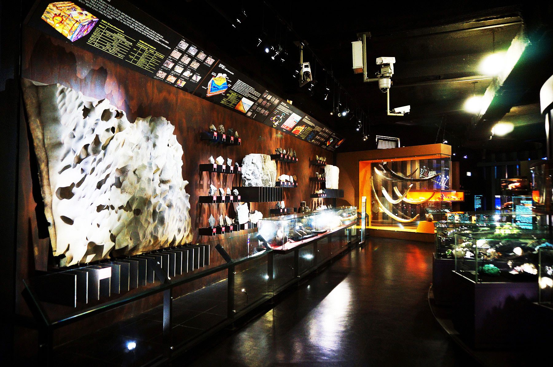 지구과학관에서는 빼어난 보석광물들과 희귀광물들이 그 아름다움을 더욱 돋보일 수 있도록
