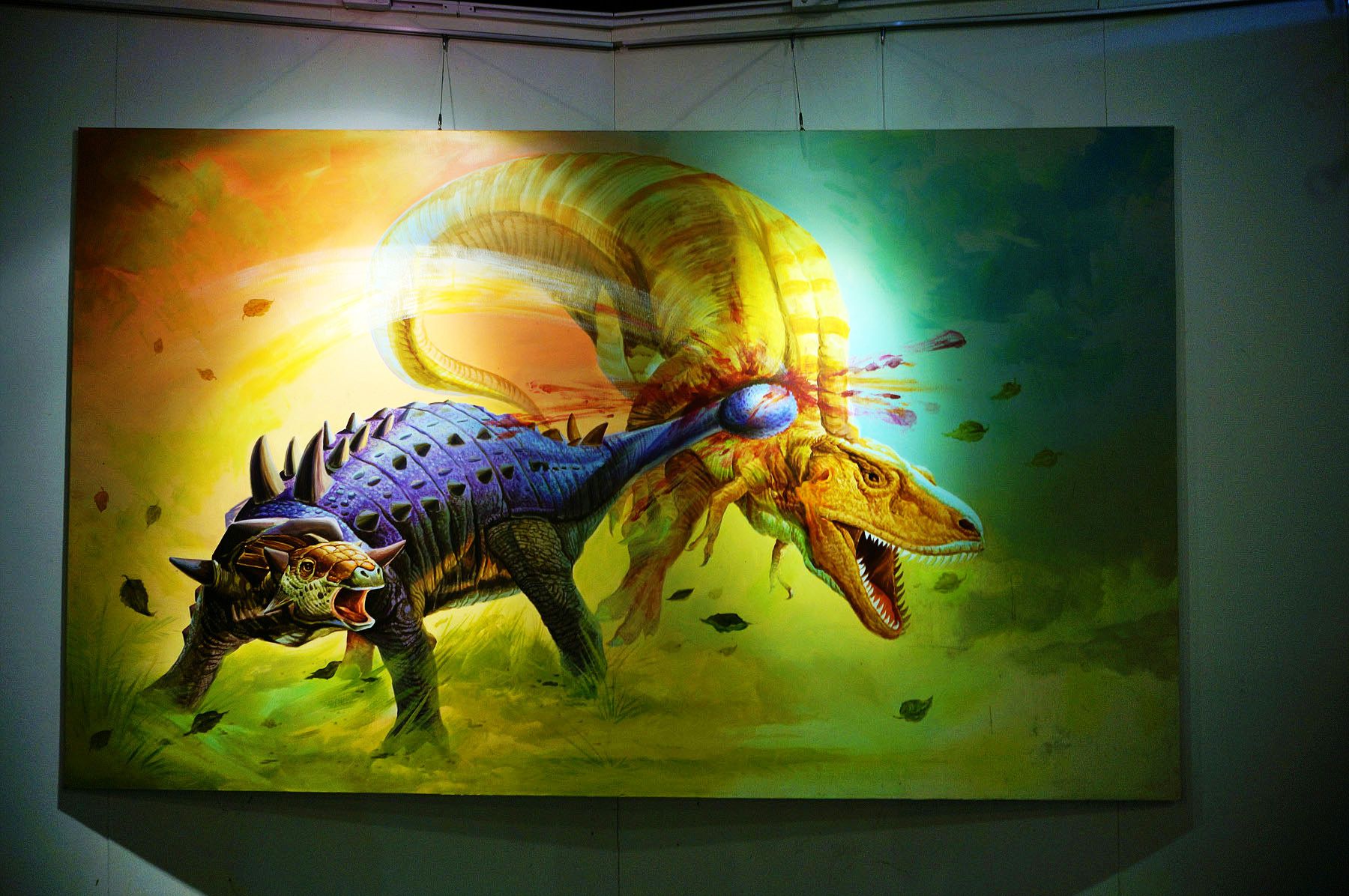 살아 있는 듯한 공룡이 금방이라도 뛰쳐나올 것 같은 모습들로 사실감 있게 표현되어 있으며