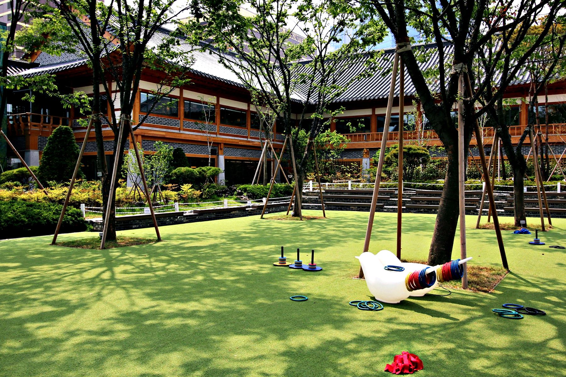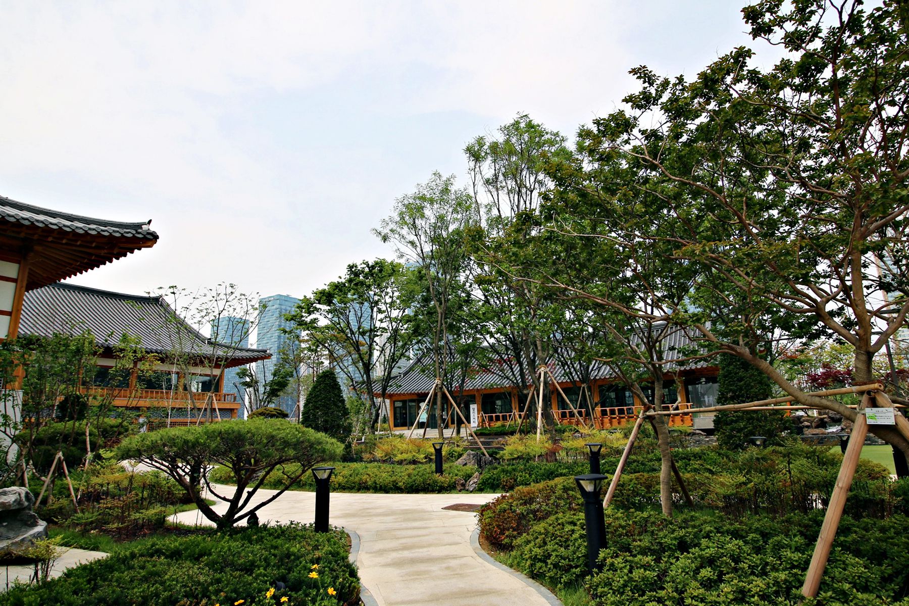 우리나라 전통가옥의 부드러운 곡선을 닮은 듯한 정원도 잘 조성되어있는 송도한옥마을은