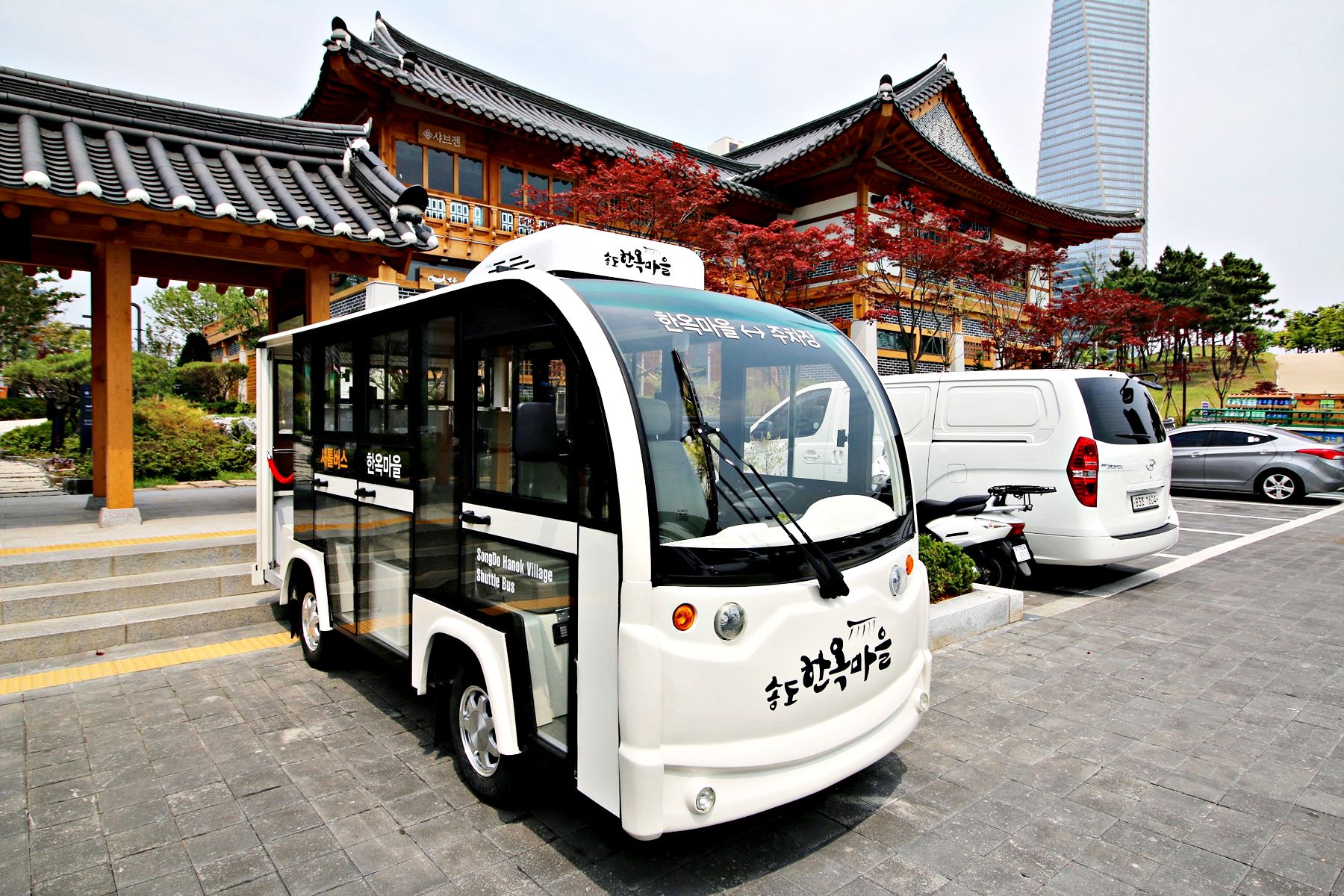 관람객들이 편하게 송도한옥마을을 이동할 수 있는 미니셔틀버스도 있습니다.