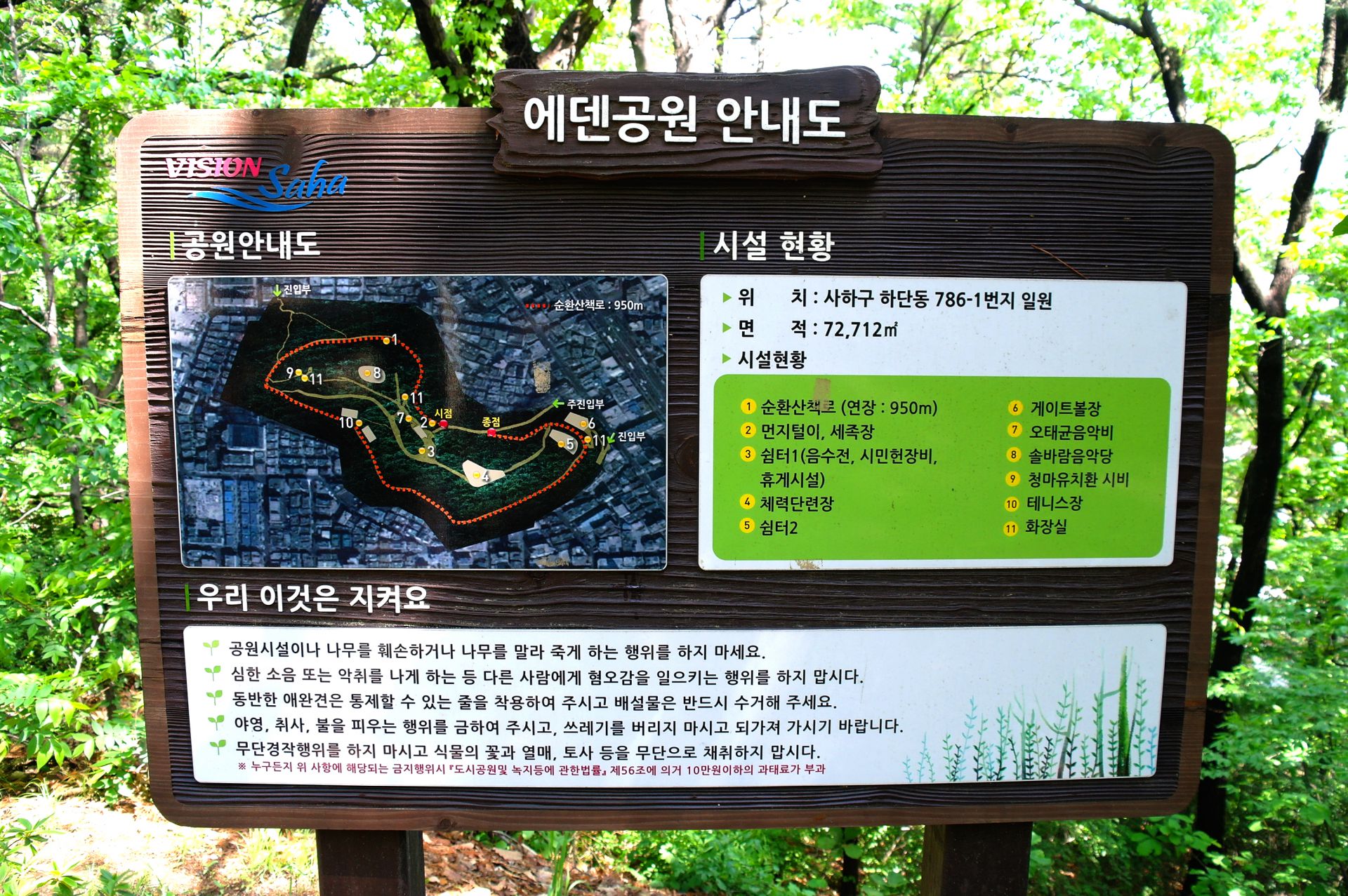 사하구 하단동에 위치한 에덴공원은 도심속 공원으로 시민들에게 사랑받고 있습니다.