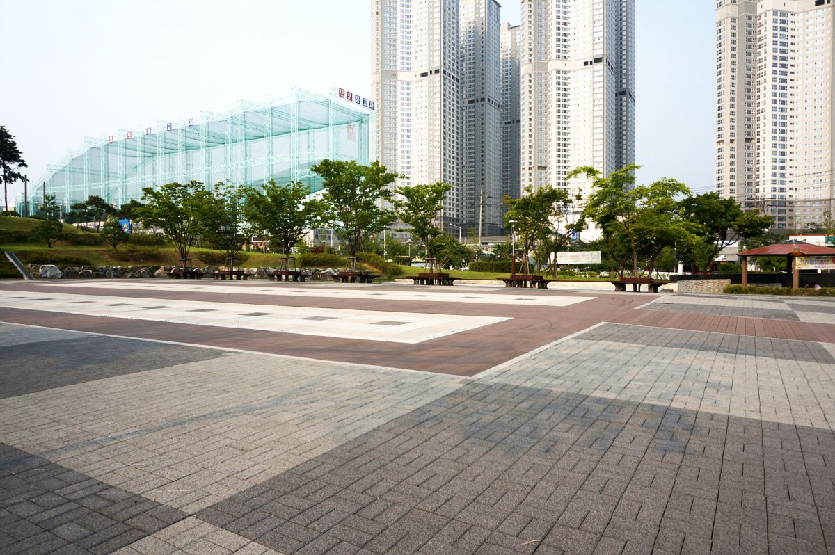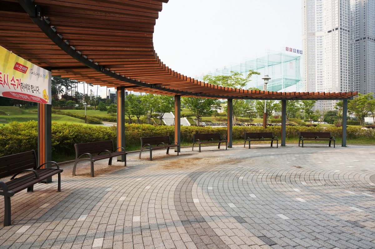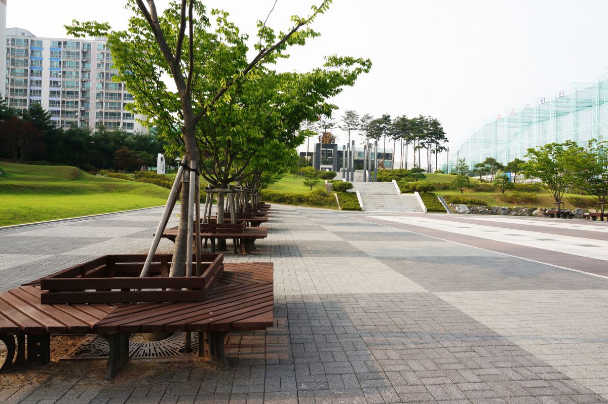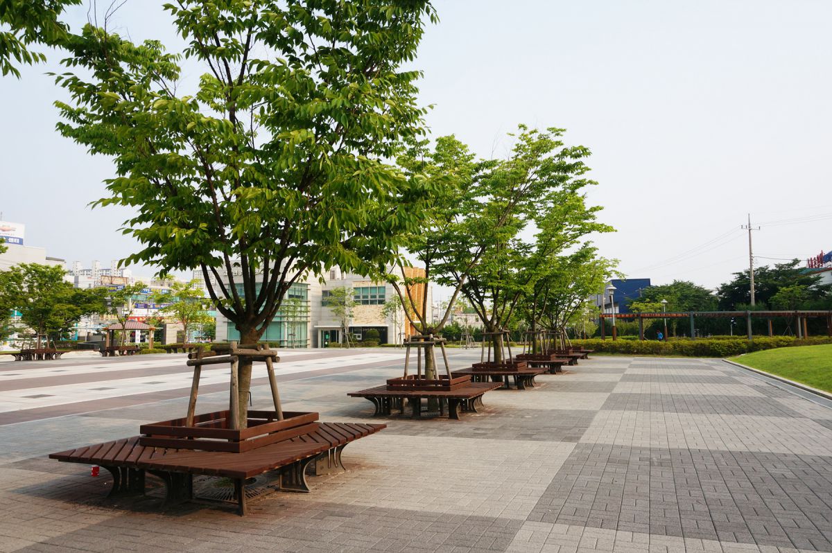 넓고 깨끗하게 조성된 광장에는 쉴 수 있는 벤치가 많이 미련되어 있습니다.