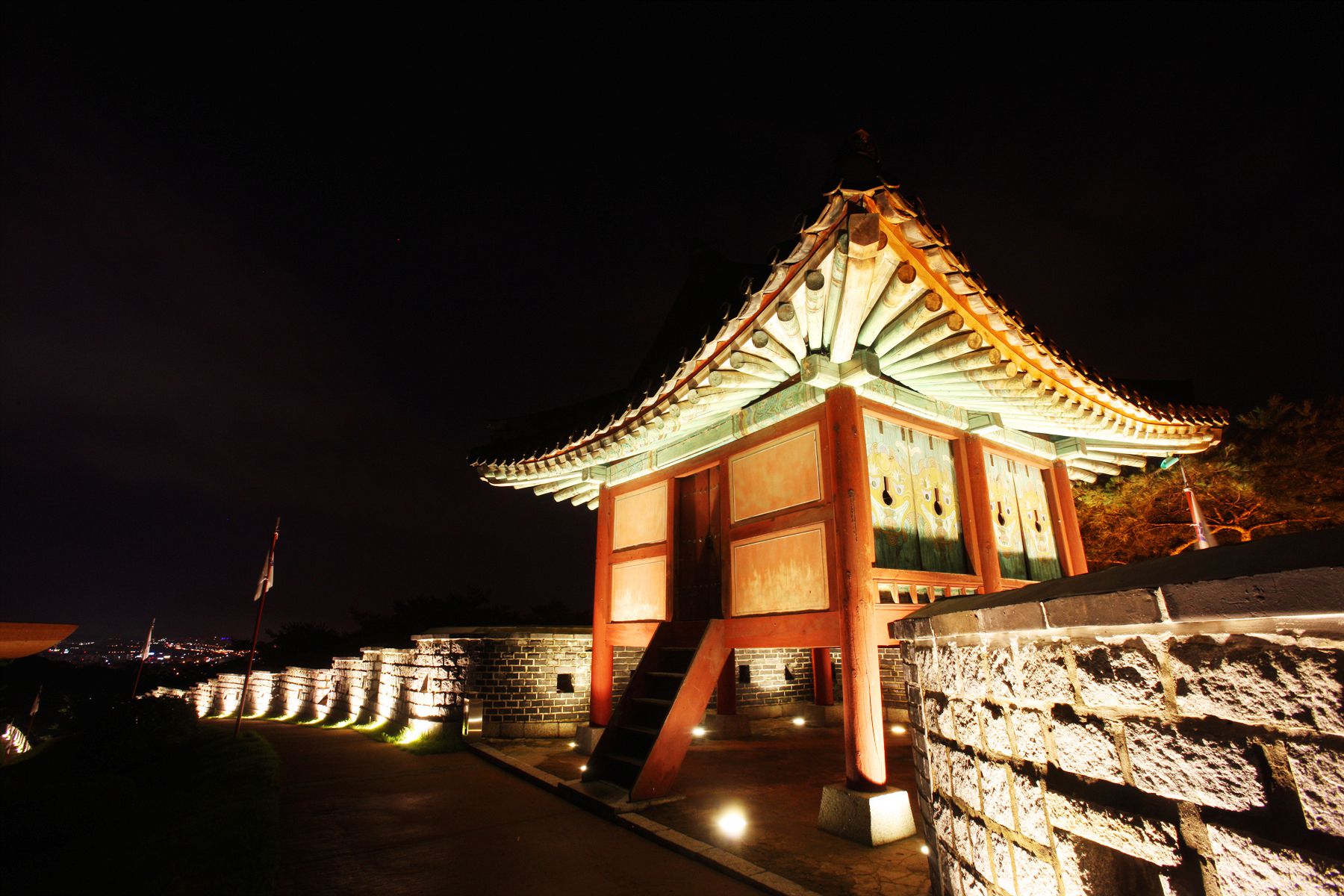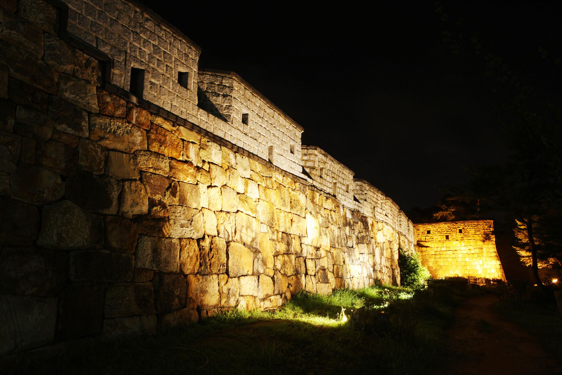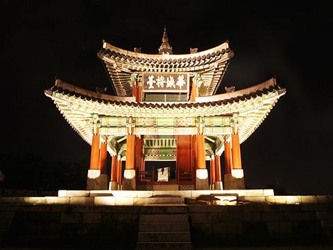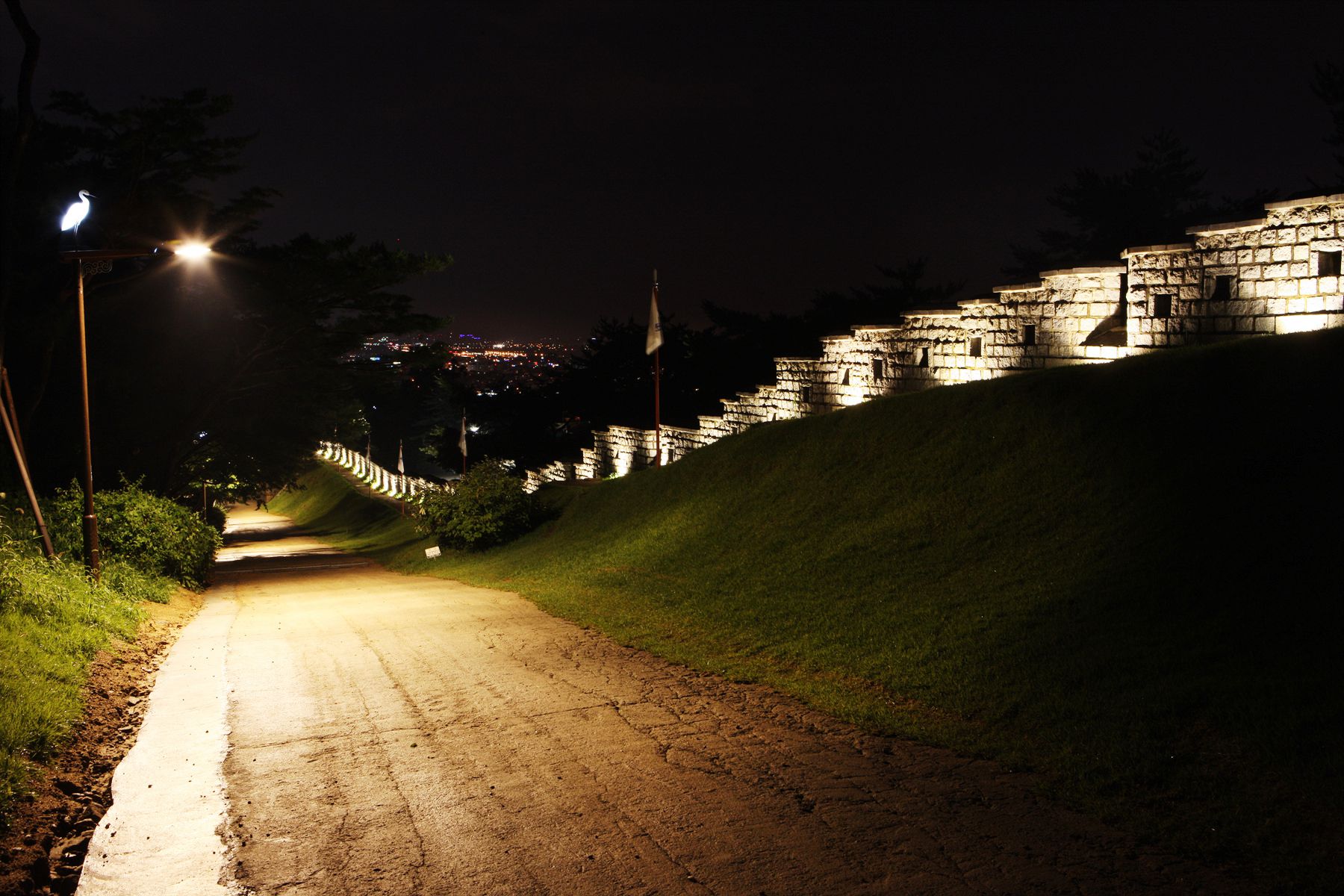 은은한 조명과 멋스러운 성곽의 모습이 운치 있는 수원화성은 팔달산에 위치해있어