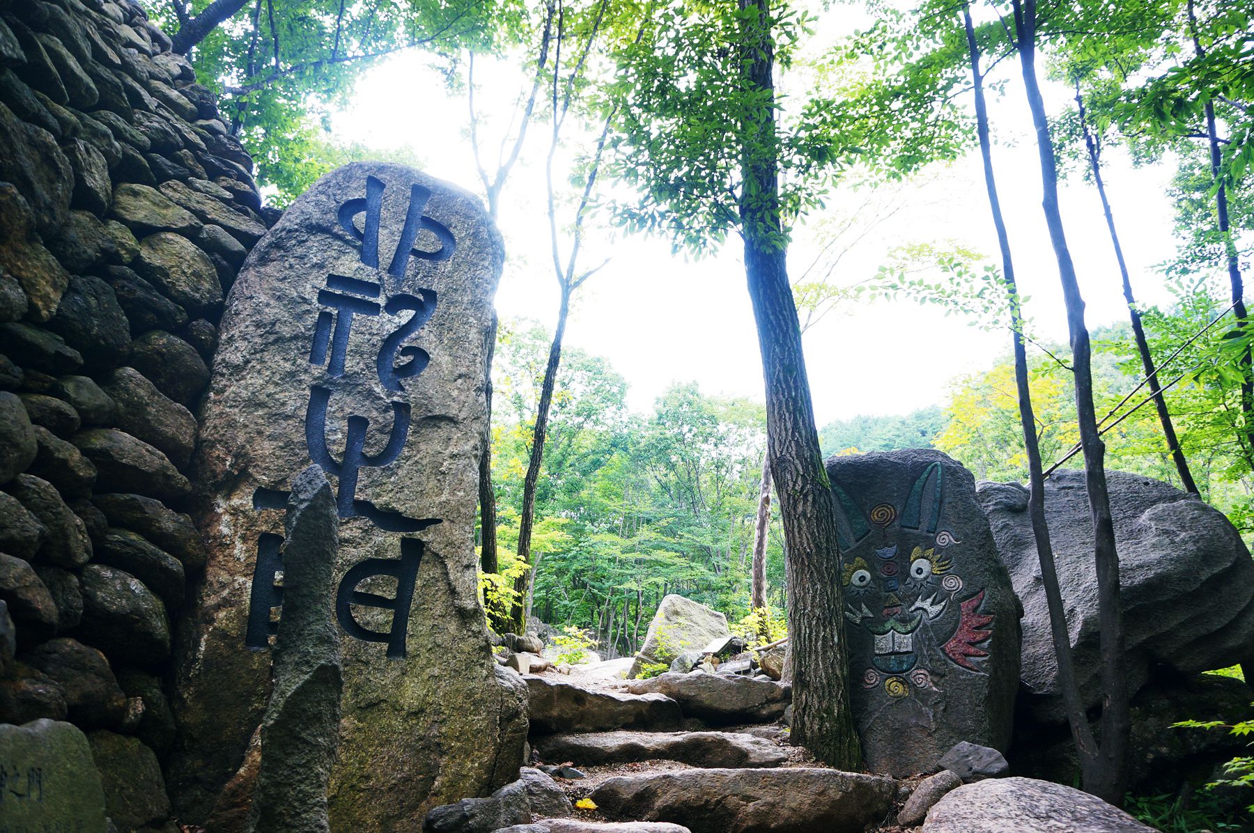 삼성궁의 입구에서 이어진 검달길을 따라 울창한 숲과 시원하게 흐르는 계곡물 소리들으며 들어 가다보면