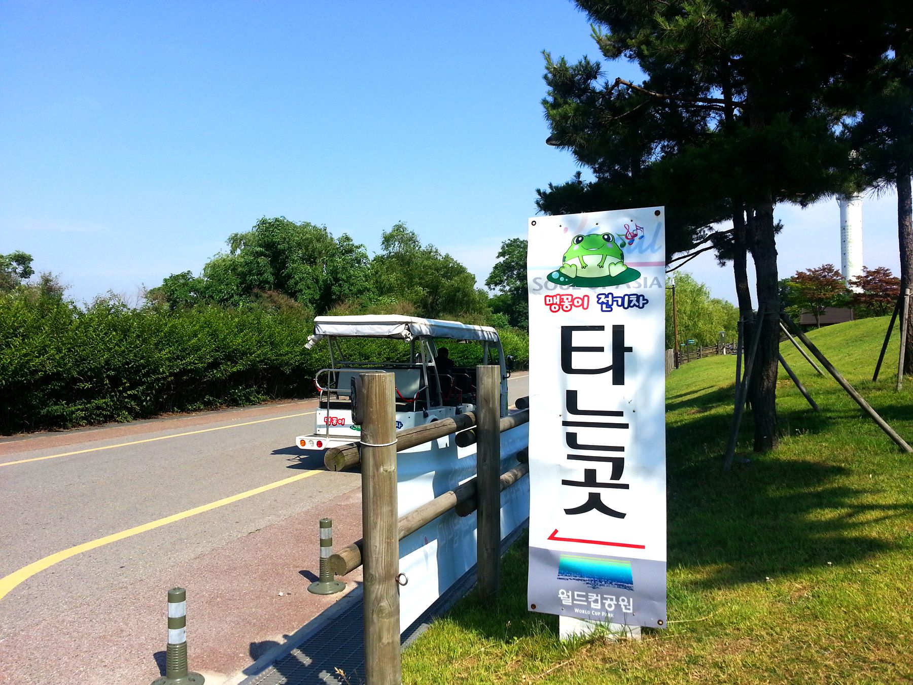 노을공원 올라가는 길에는 맹꽁이전기차가 운행되고 있습니다.