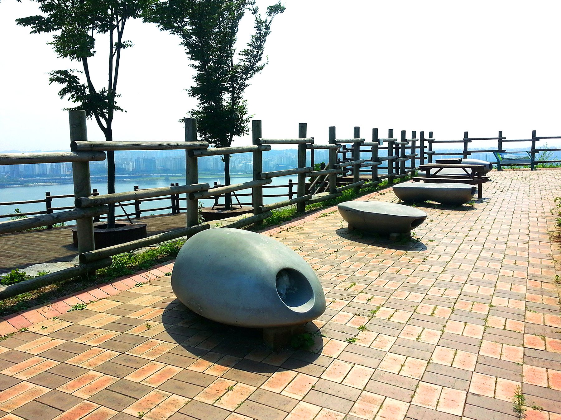 내려다볼 수 있도록 경사진면에 이용자들이 쉬고 머무를수 있는 공간을 마련해 놓았습니다.
