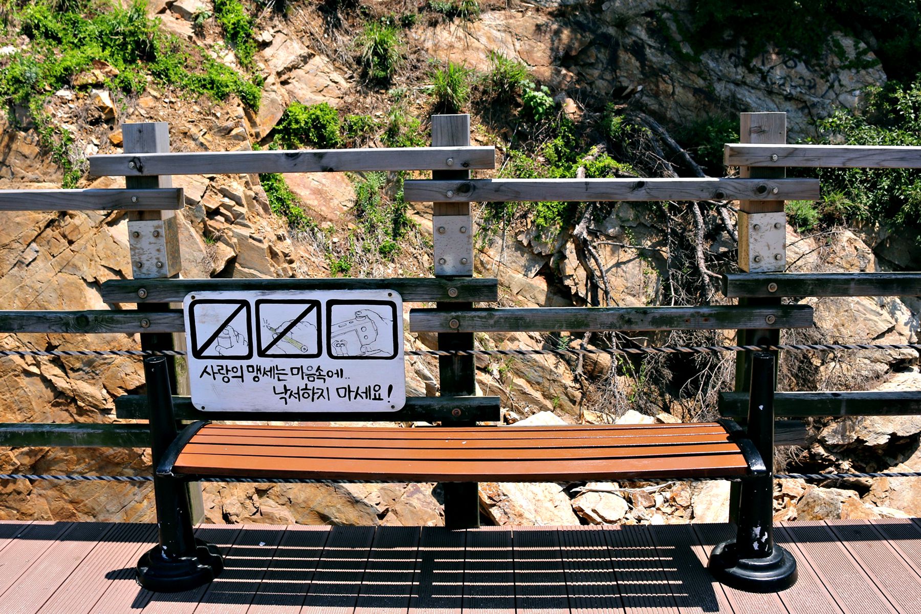 산책로는 자연경관을 해치지 않도록 자연친화적인 시설물로 주민과 환경단체의 의견을 수렴하여 만들어졌습니다.