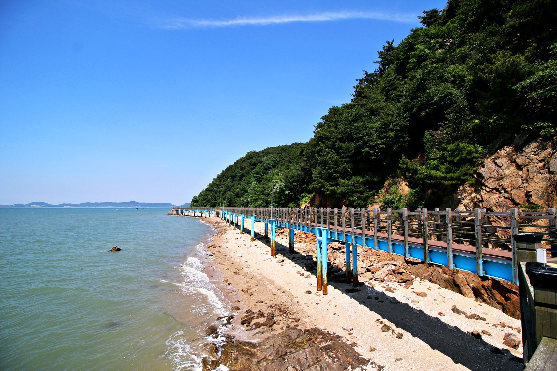 산책길을 걸으면서 만나는 바다는 고요하고 여유롭습니다.