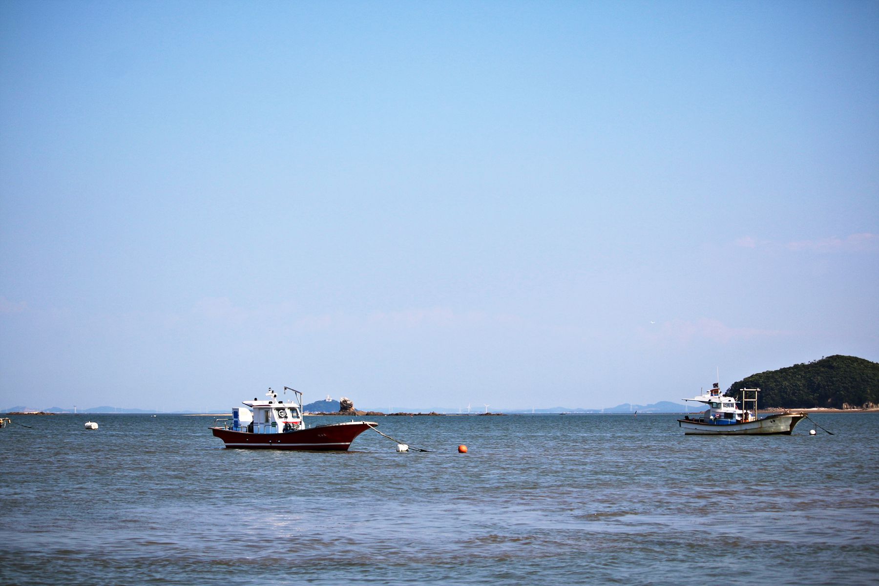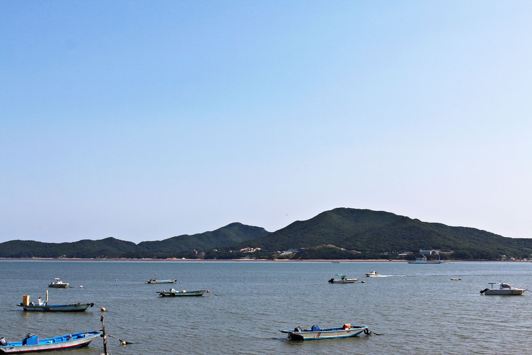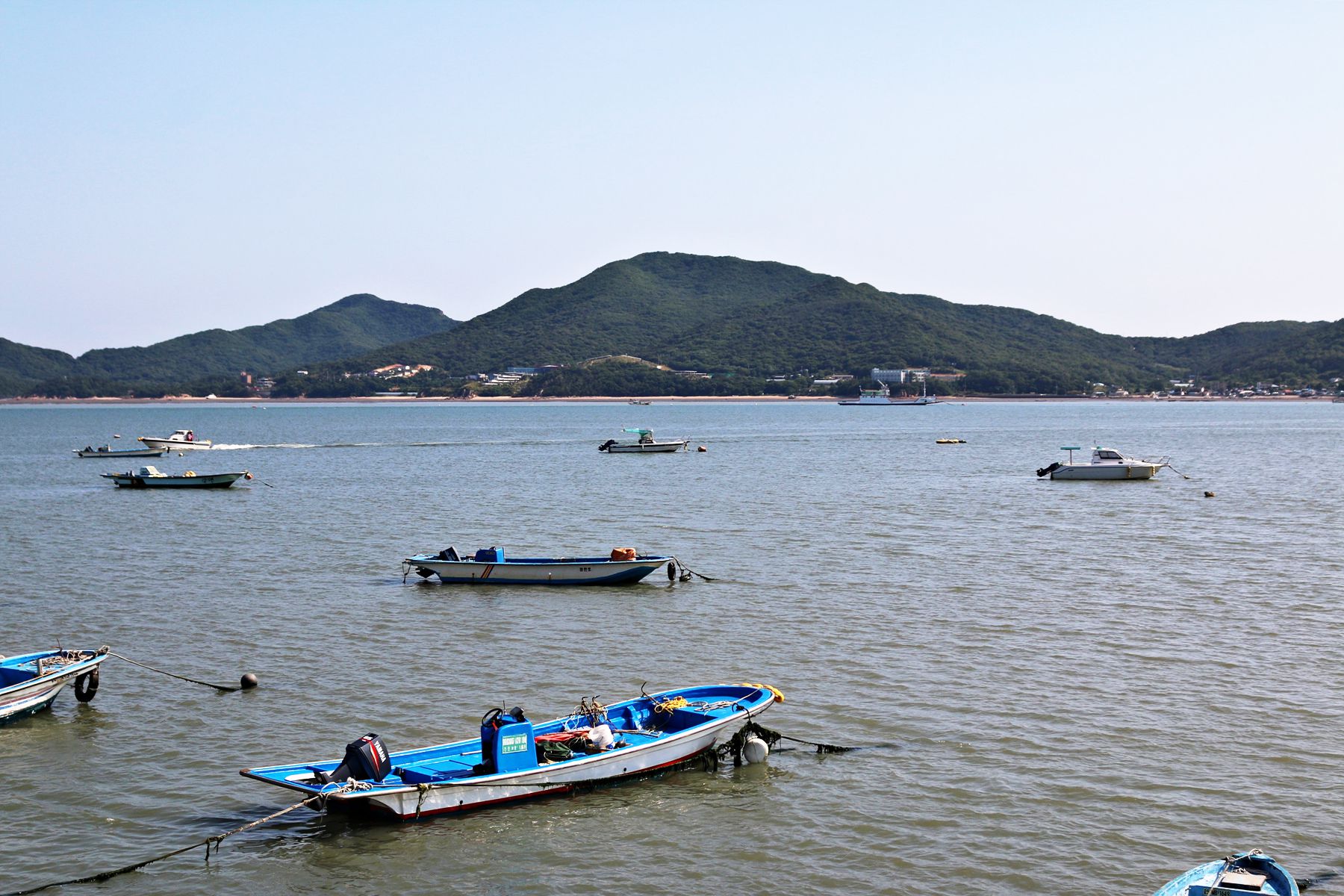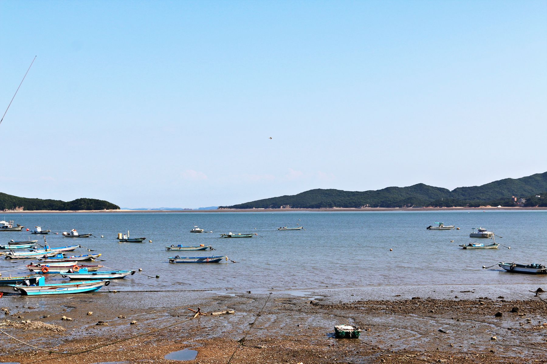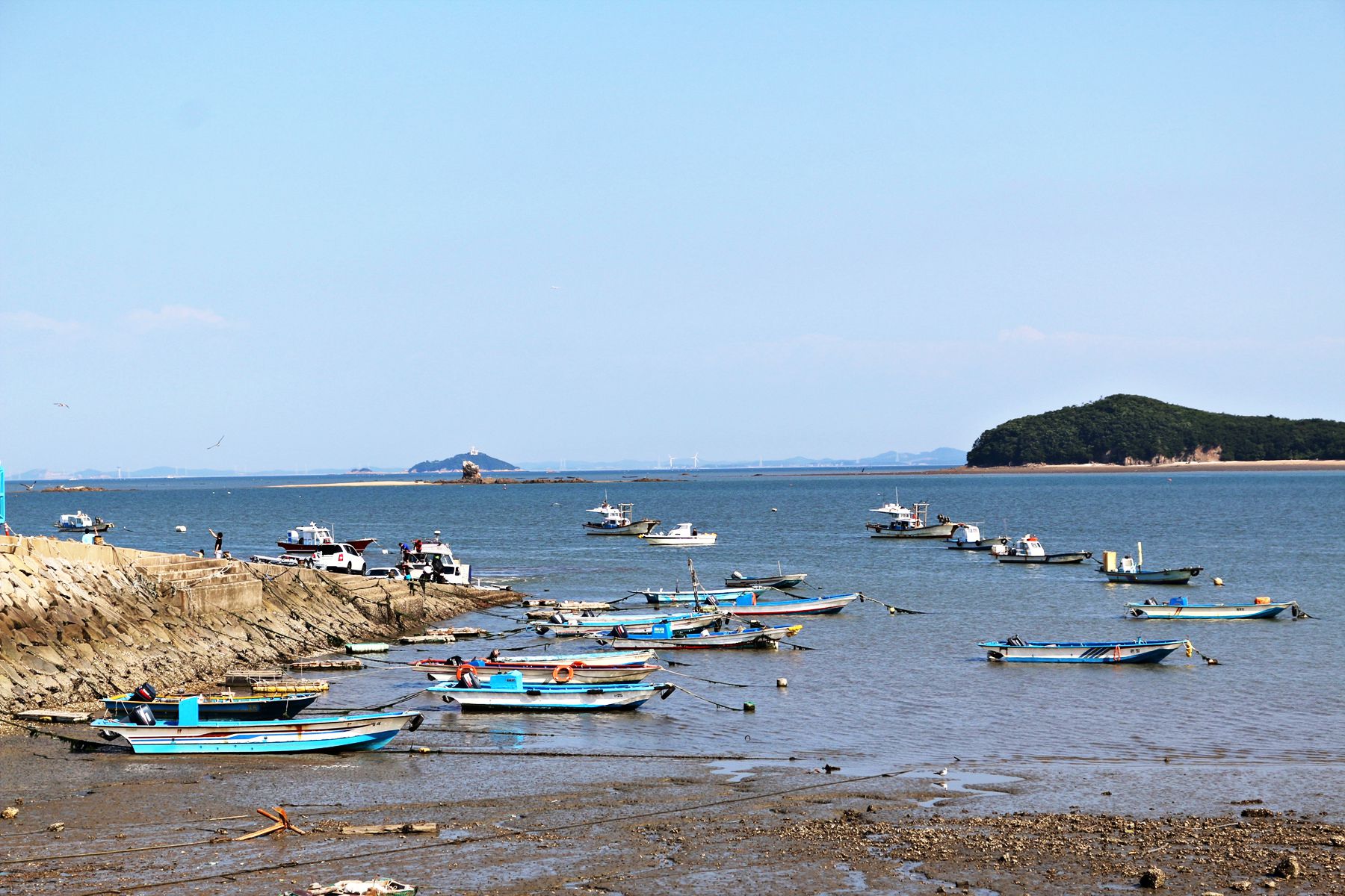 바다위나 바닷물이 빠진 갯벌에 정박해 있는 배들의 풍경이
