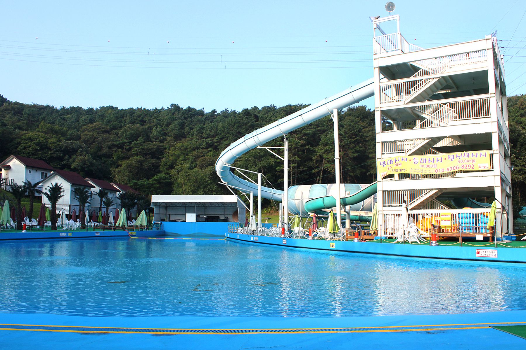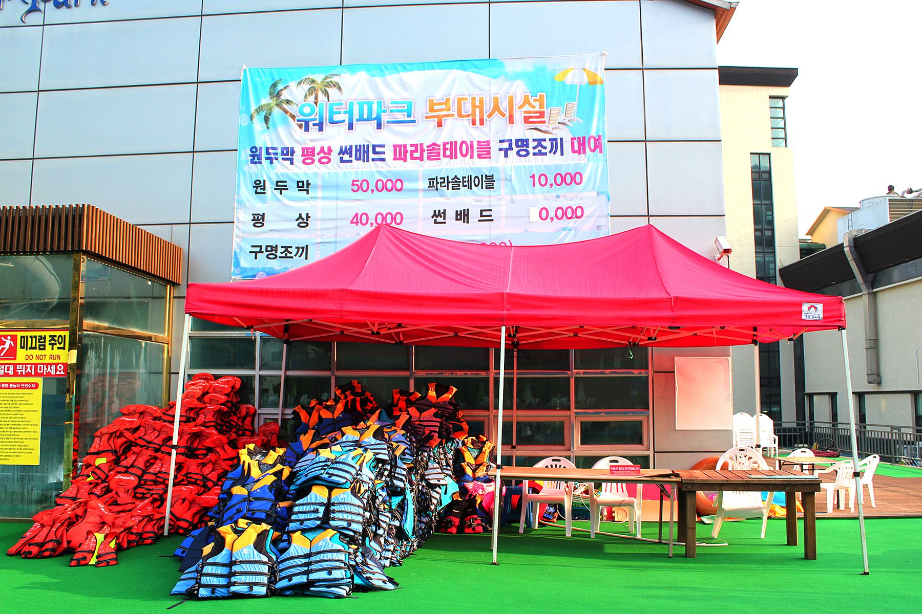 여름에만 이용할수 있는 실외 워터파크의 한켠엔 물놀이를 즐기면서 필요한 물품이나 부대시설을