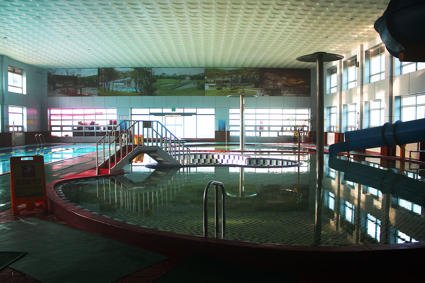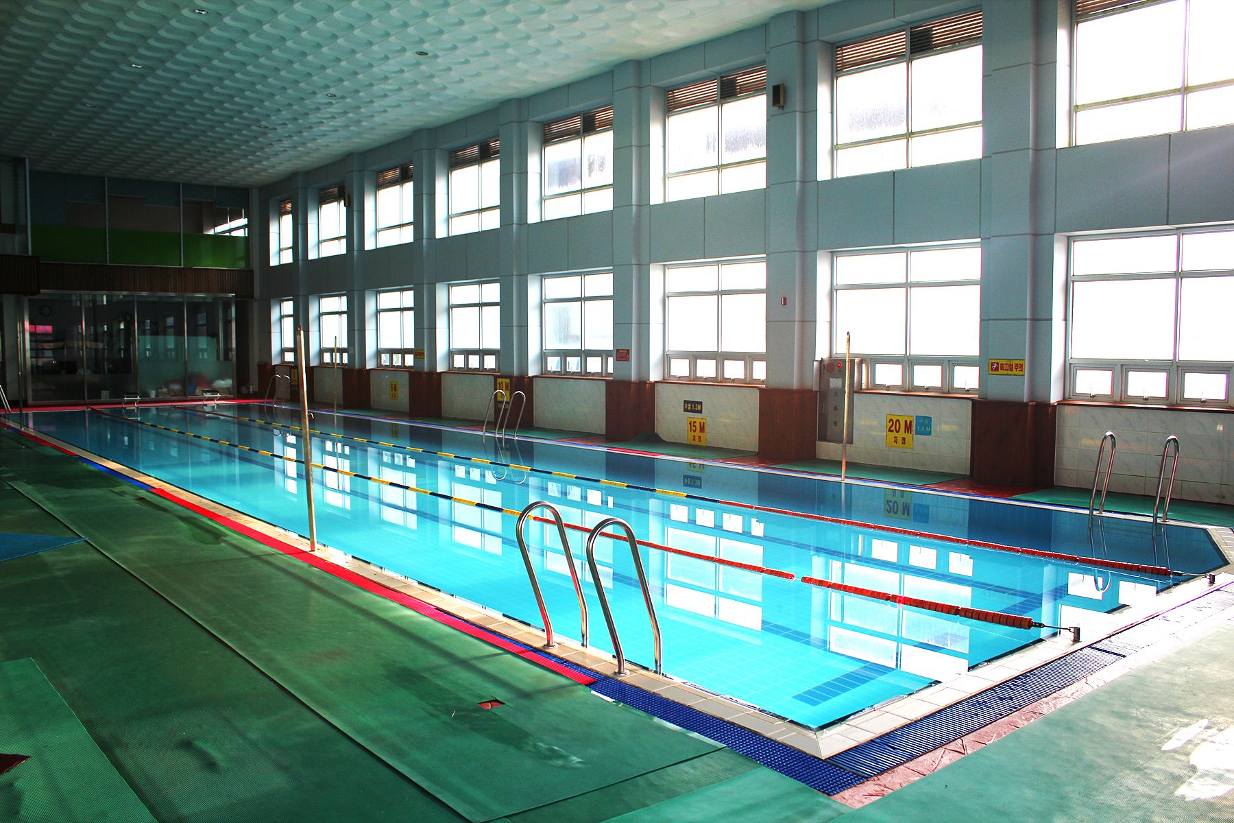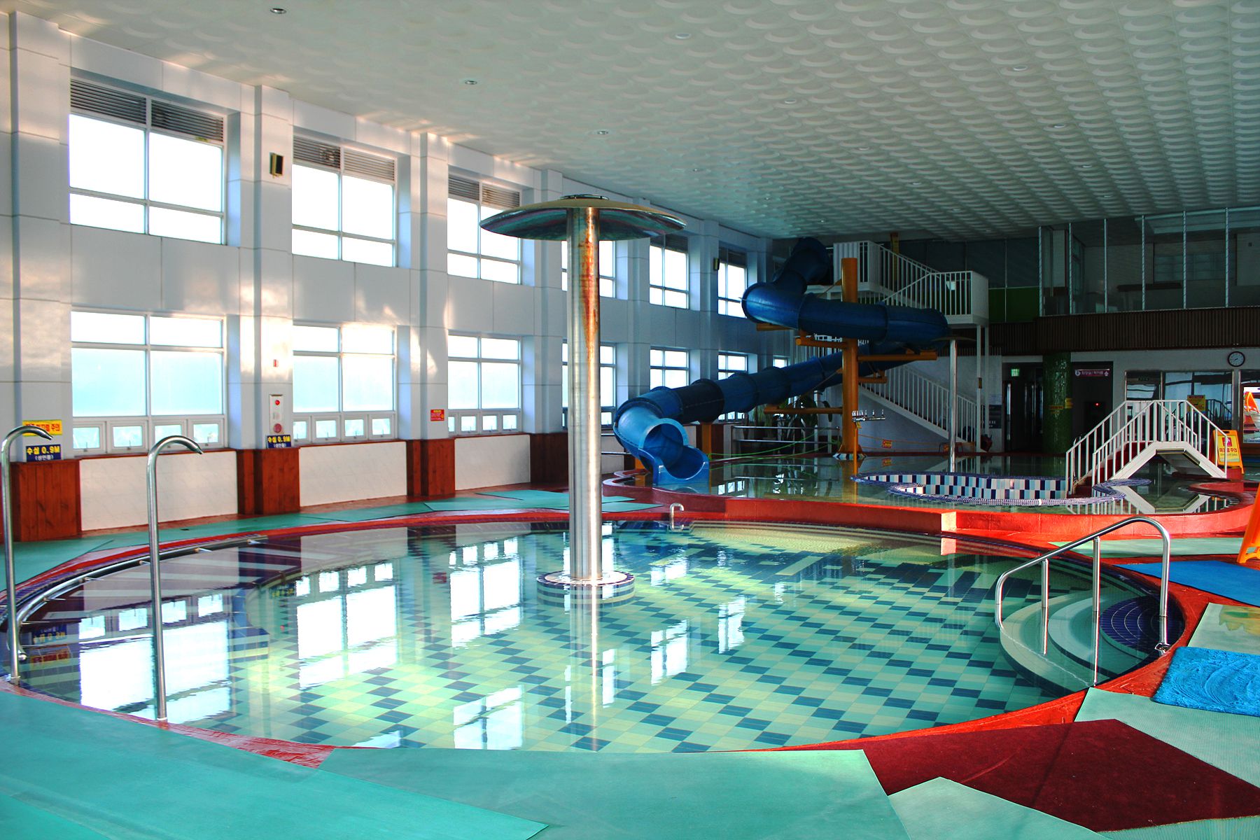너무 크지도 작지도 않은 적당한 규모에 깔끔하고 알차게 꾸며진 실내풀장은 1년 내내 이용이
