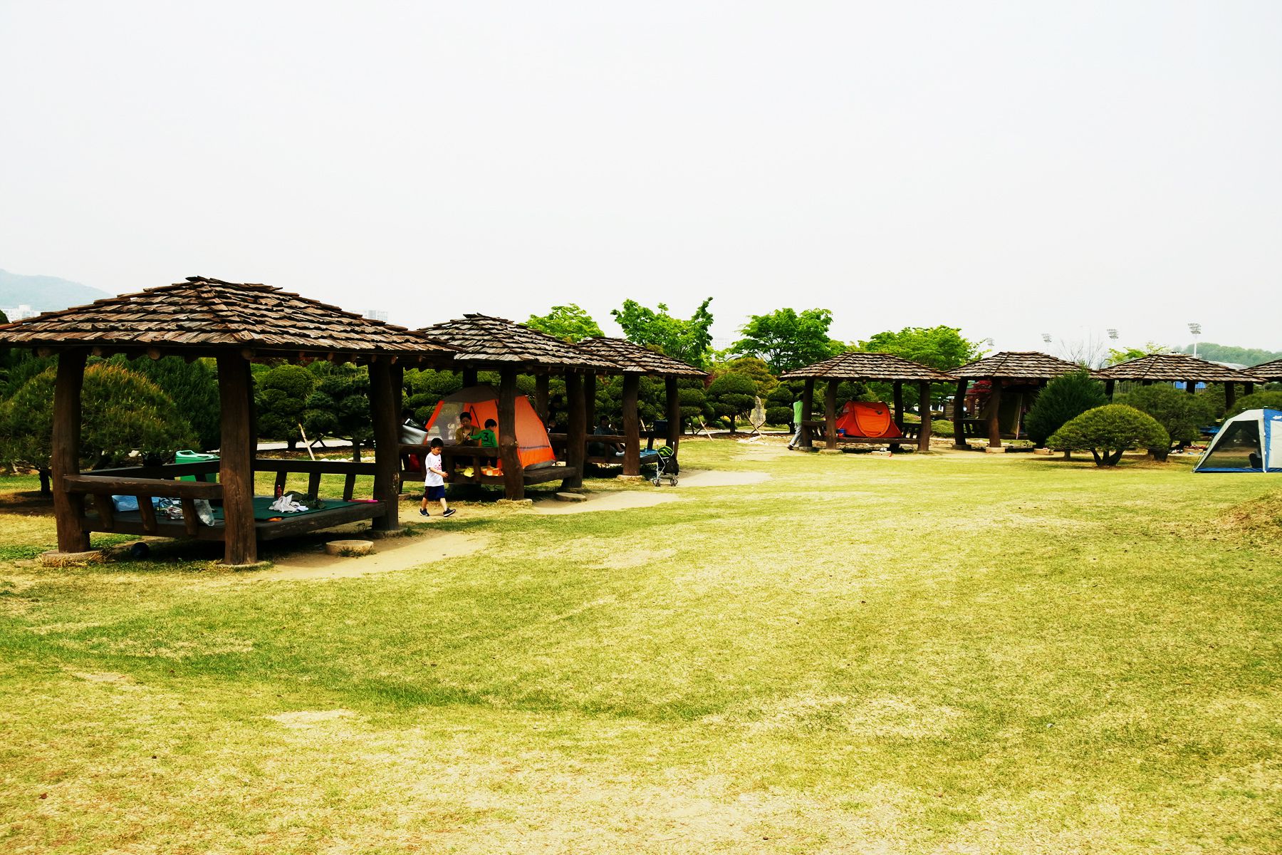 잠시 쉬어갈 수 있는 원두막, 그리고 넓은 잔디밭에서 휴식을 취하는 가족단위 방문객들을 만나볼 수 있습니다.