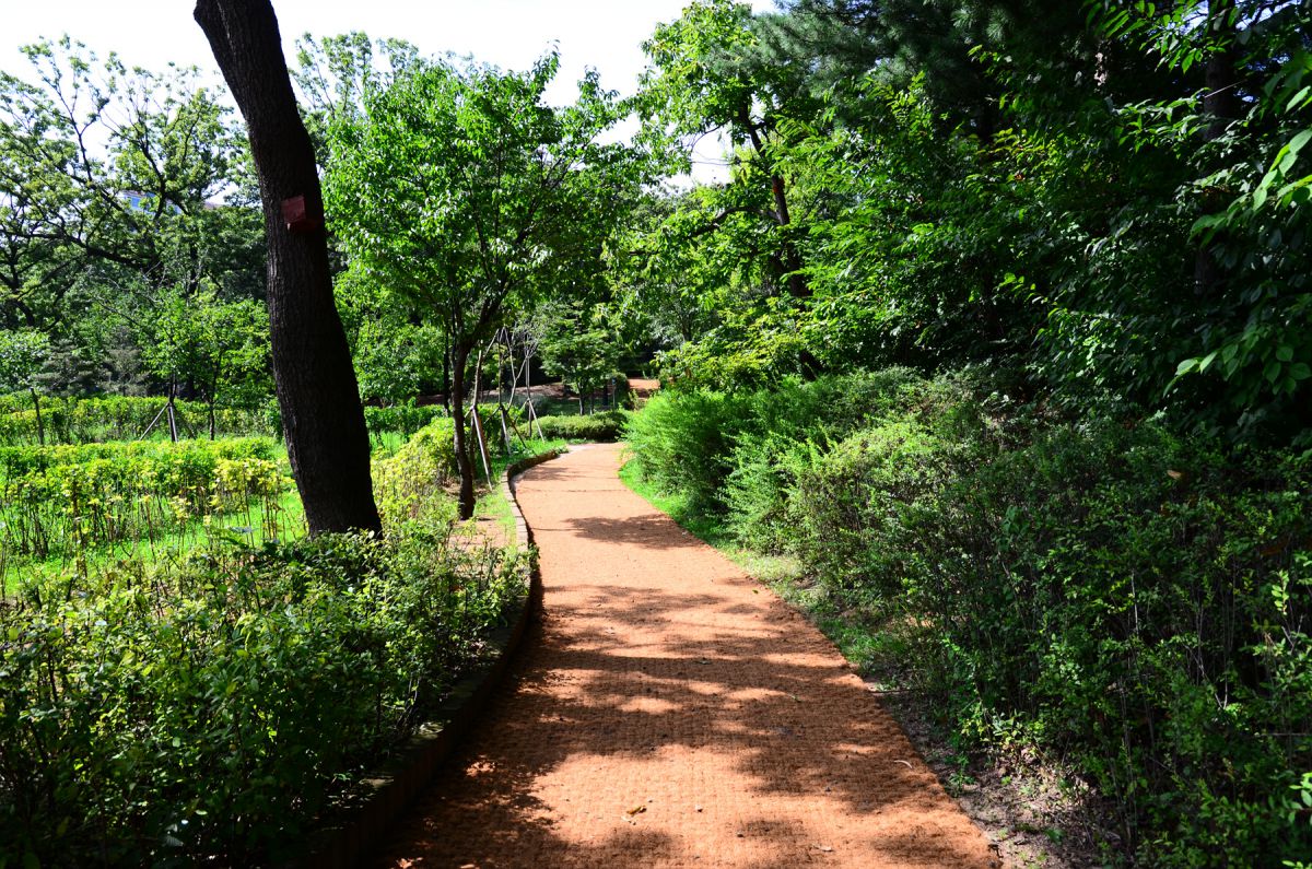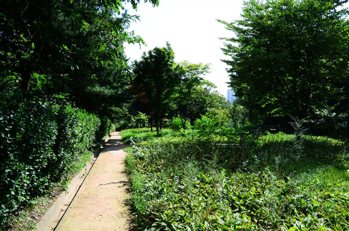 산책로 옆으로 쑥부쟁이, 둥굴레, 옥잠화 등의 식물들이 자라고 있습니다.