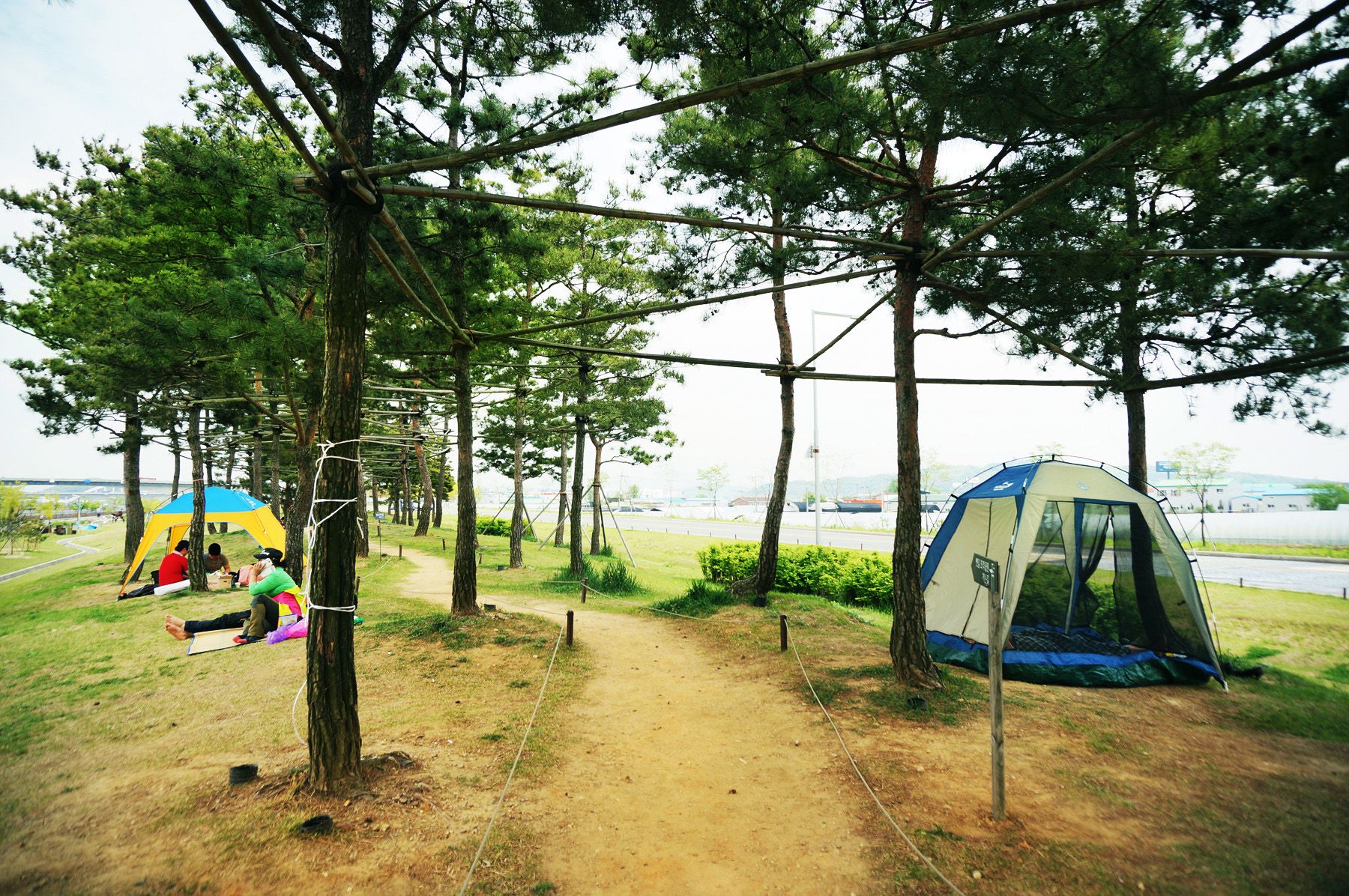 소나무 그늘 밑에 돗자리나 텐트를 펼수 있어 시원하게 불어오는 바람을 맞으며 편안하게 휴식을 취할 수 있습니다.