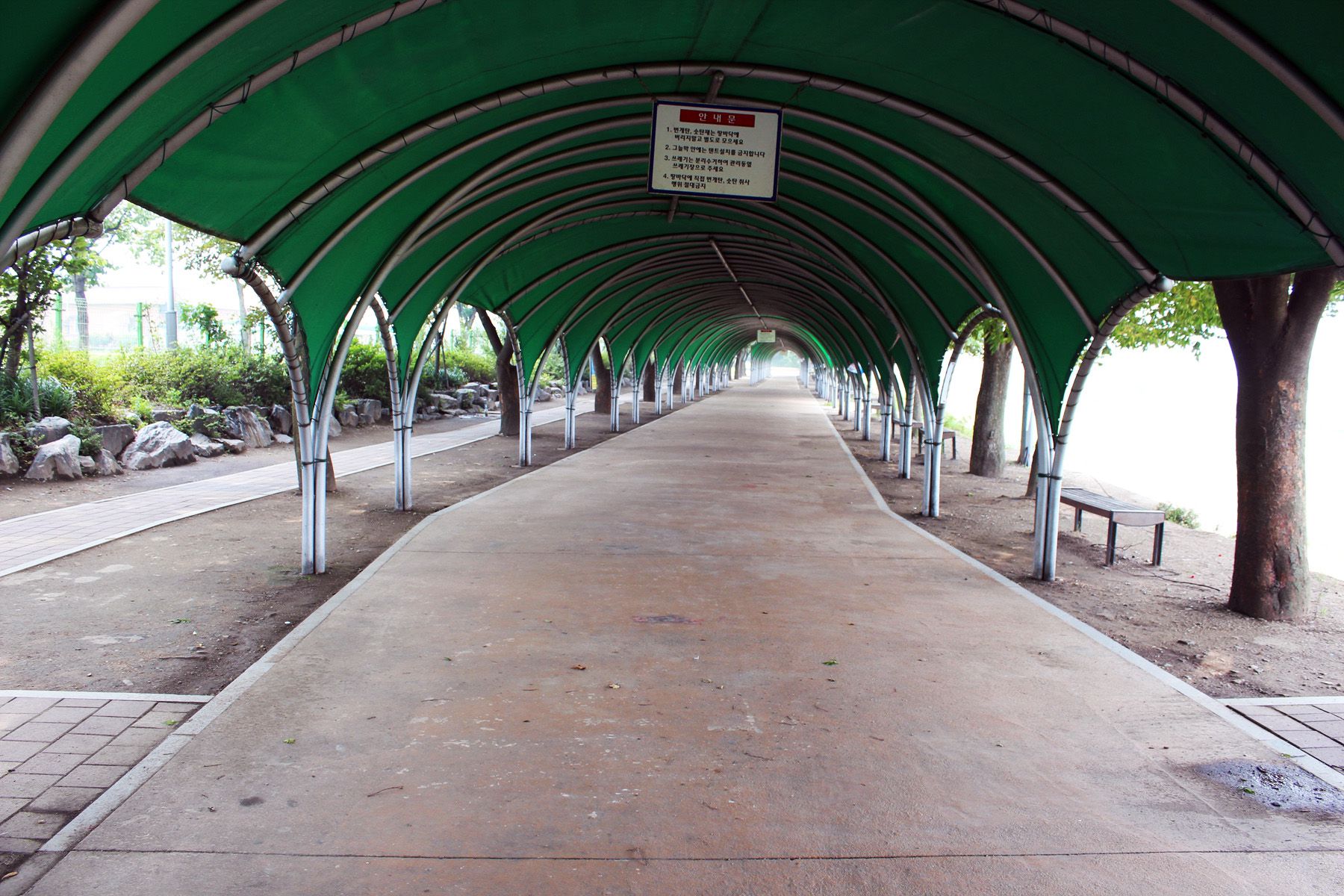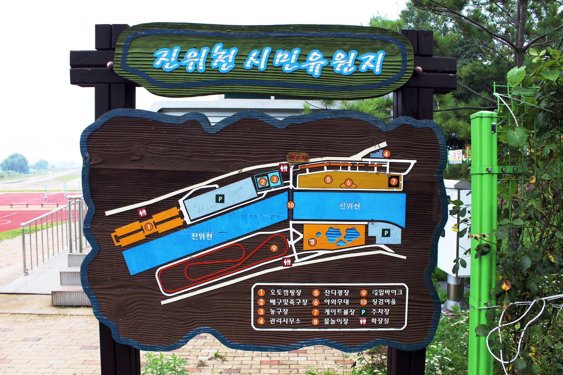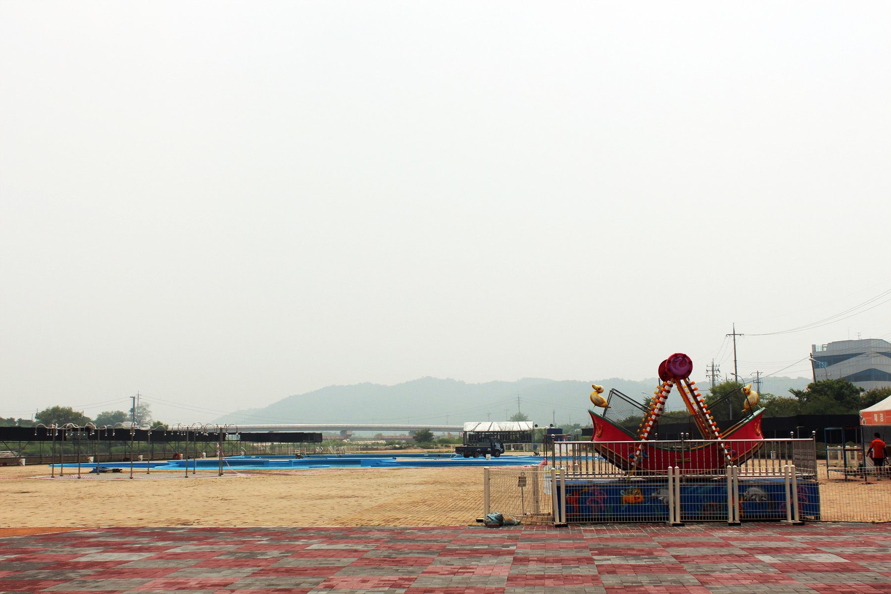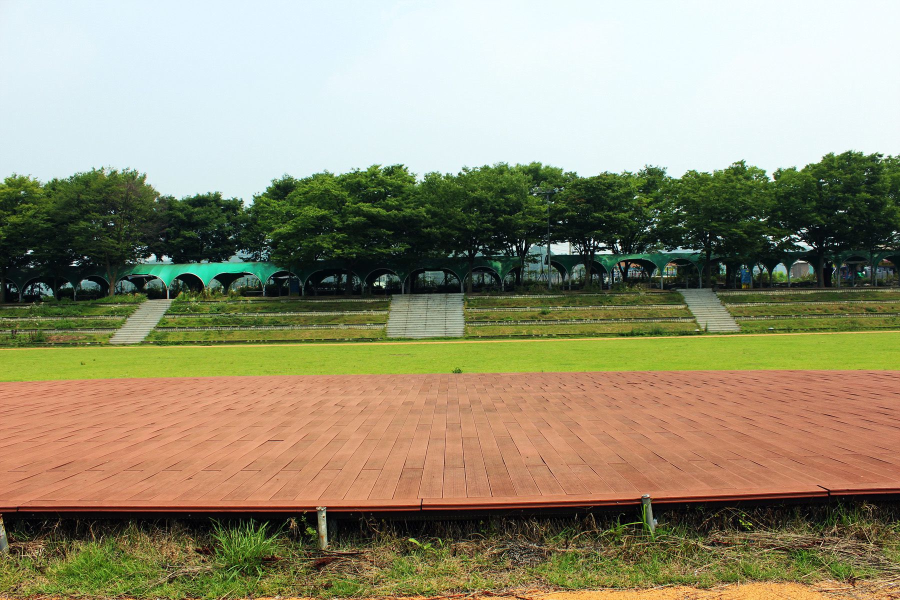 진위천이 시원하게 흐르는 유원지의 풍경에서 평화로움을 느낄 수 있습니다.