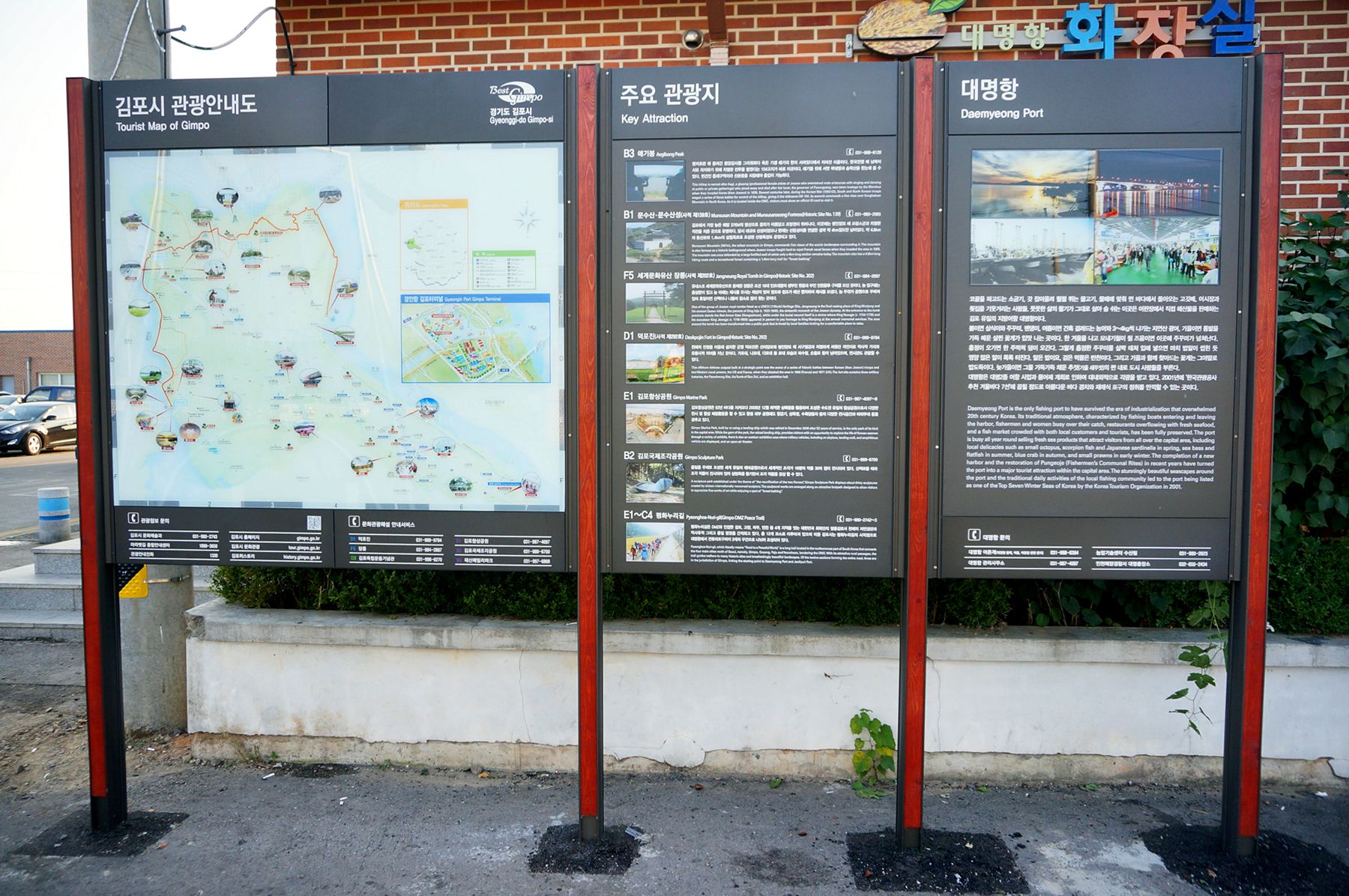 김포시관광안내도와 주요관광지, 대명항을 소개한 안내문이 있습니다.
