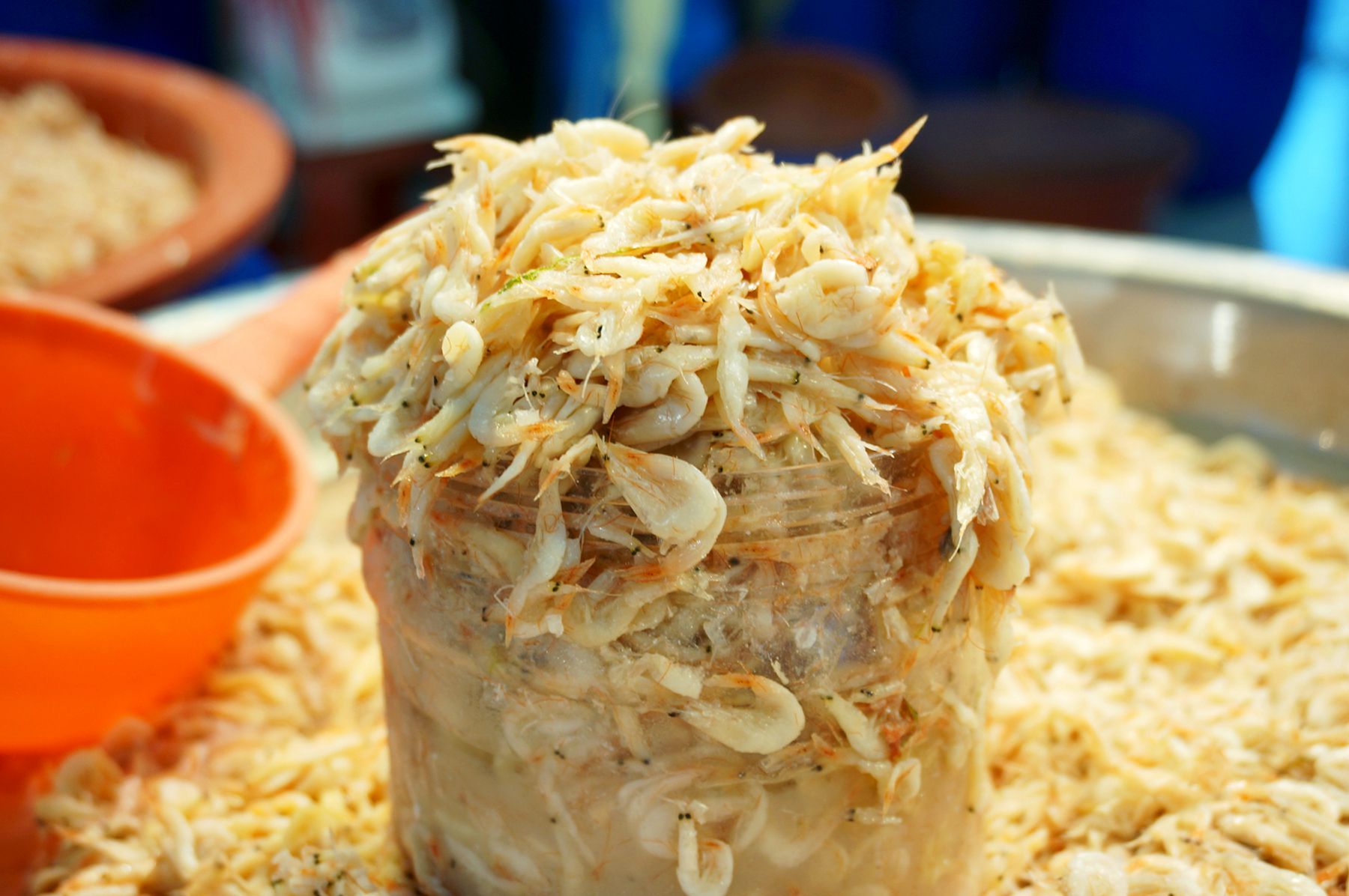 플라스틱 용기에 가득 차고도 넘칠만큼 담겨있는 새우젓을 보니