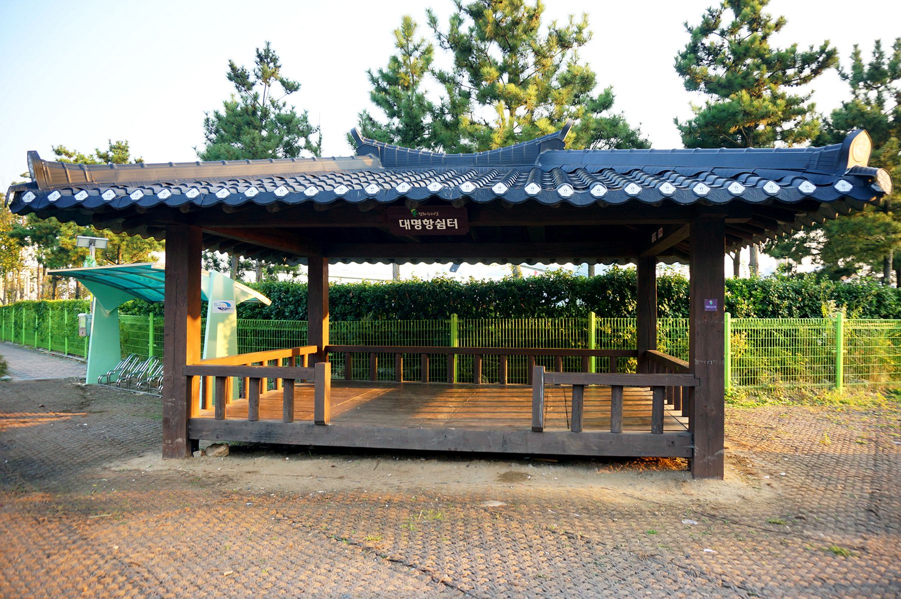 큼지막한 기와지붕에 눈에 띄는 대명항쉼터에서