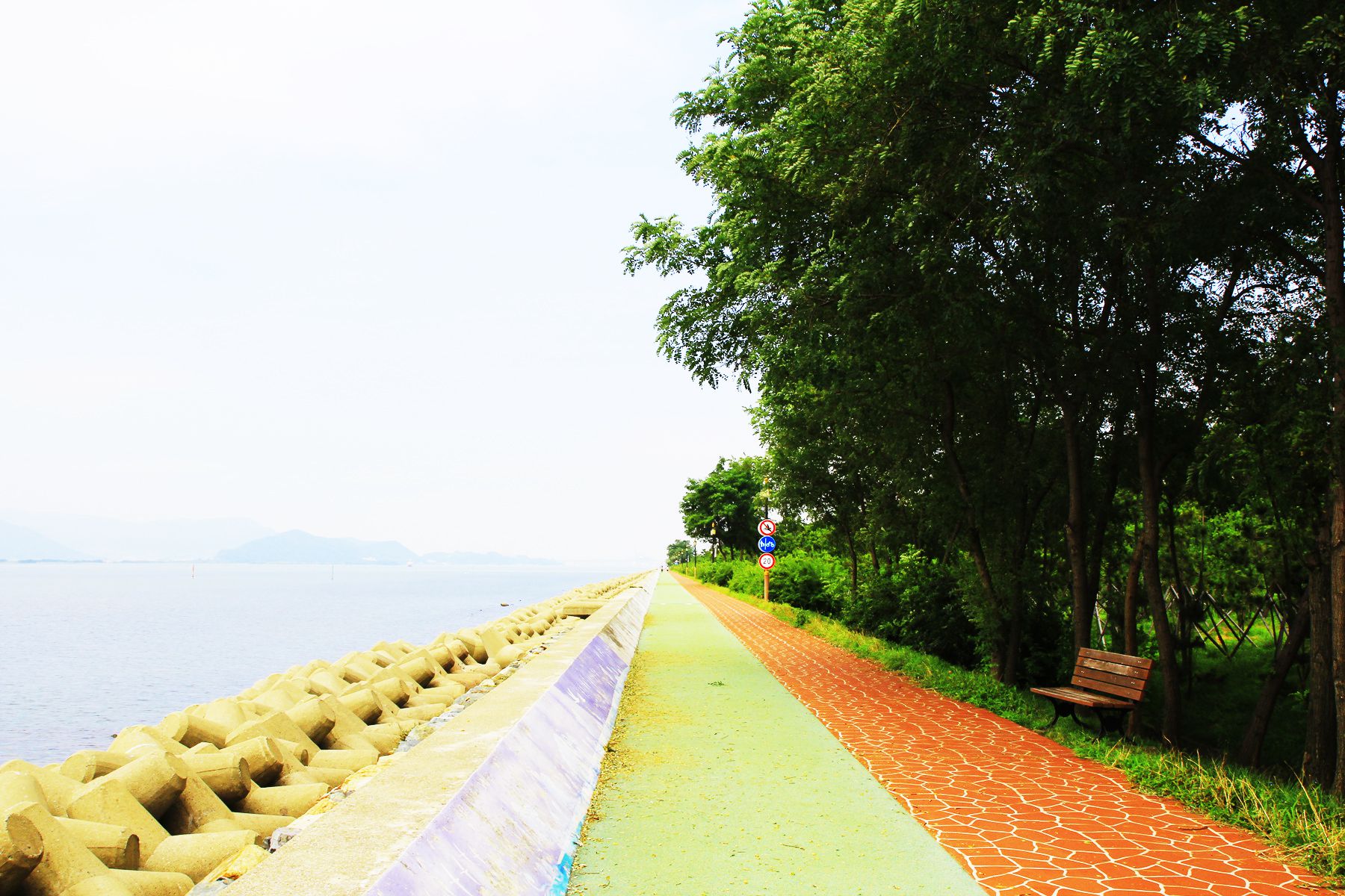 해안길을 따라 길이 잘 닦여있고 자전거전용도로와 보행자 도로가 구분되어 있어