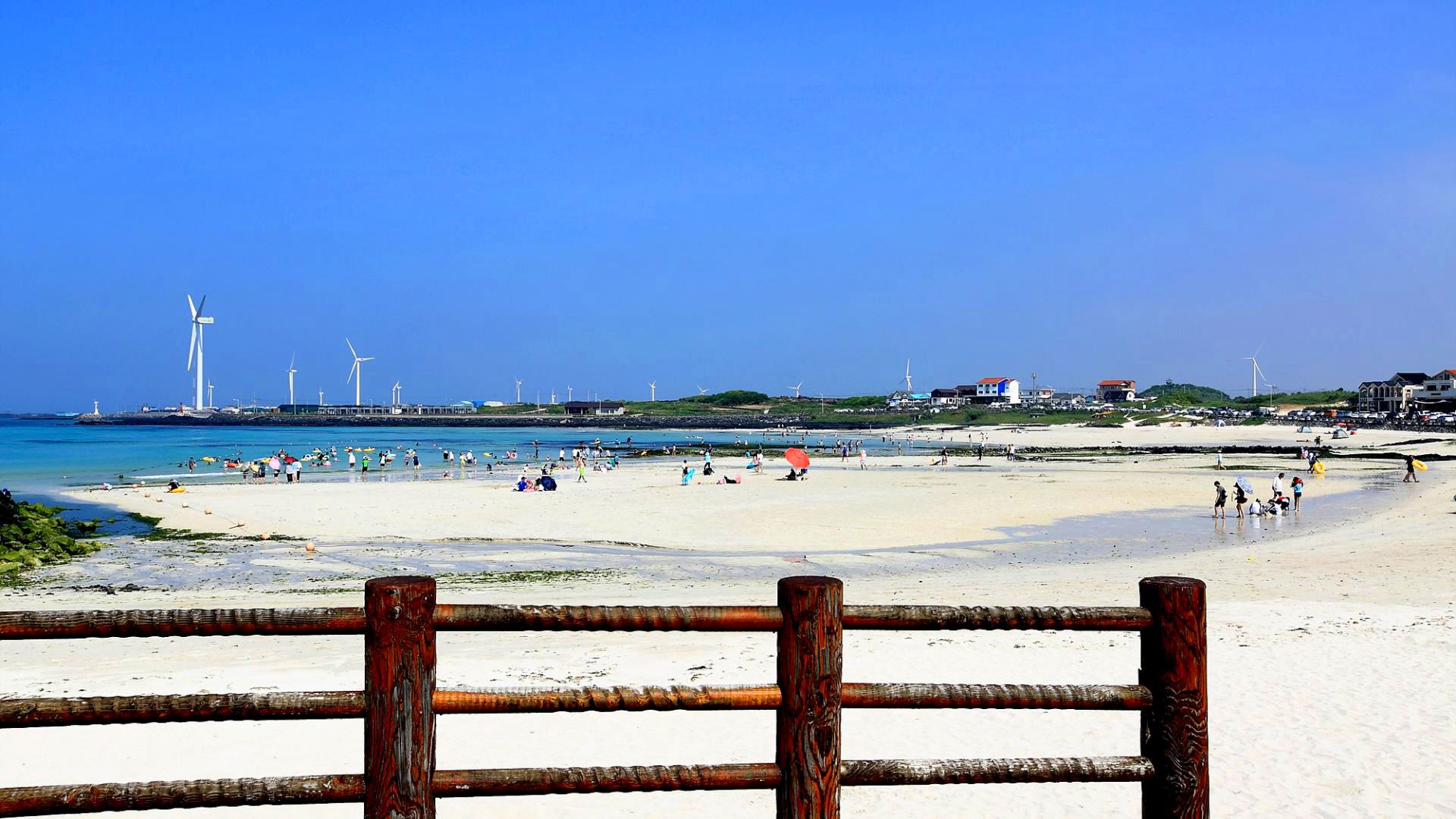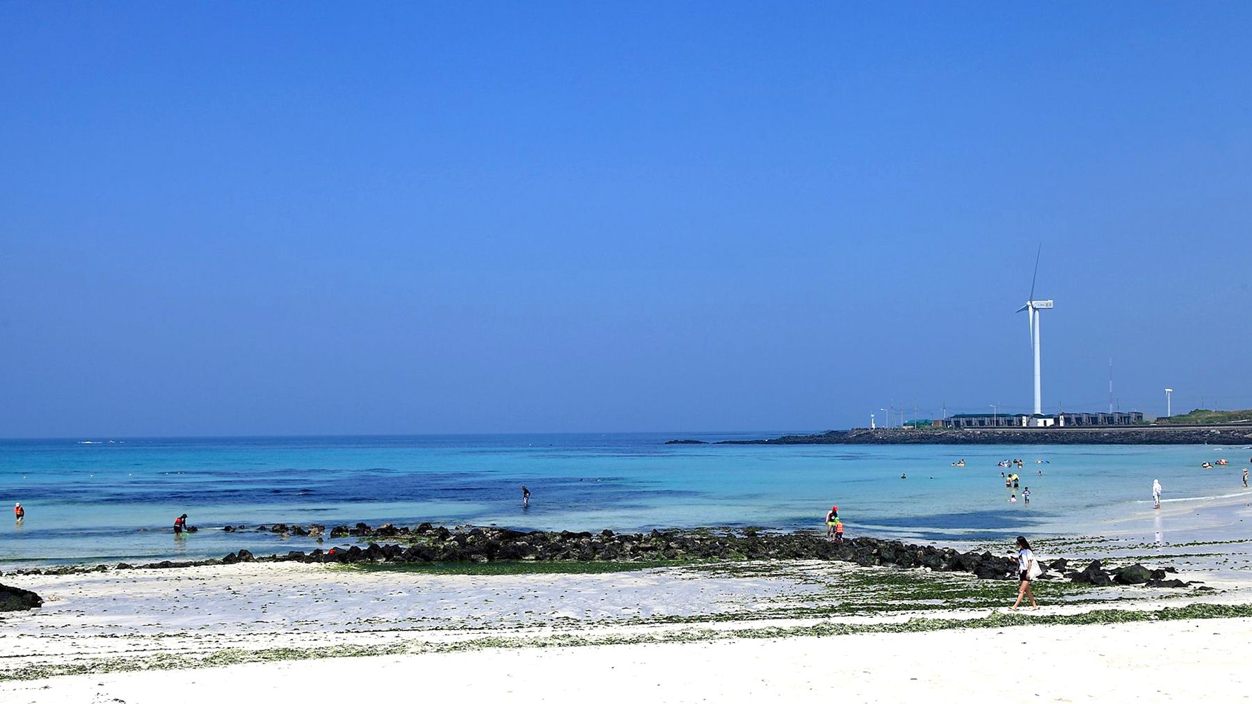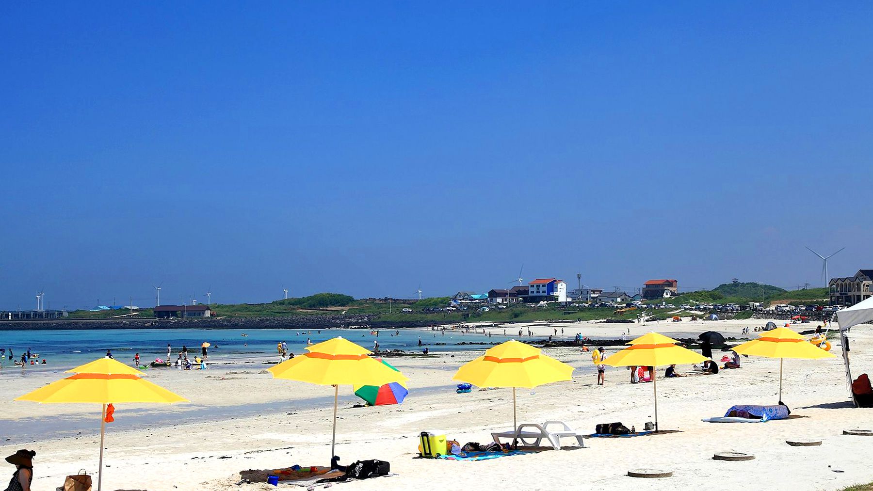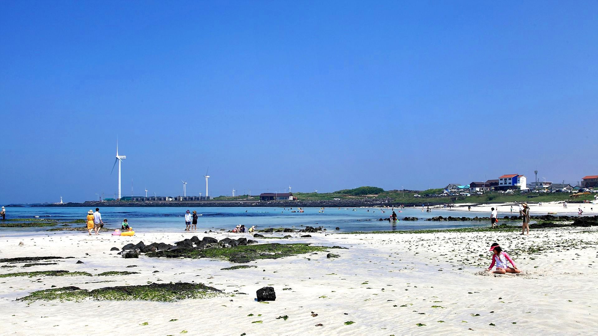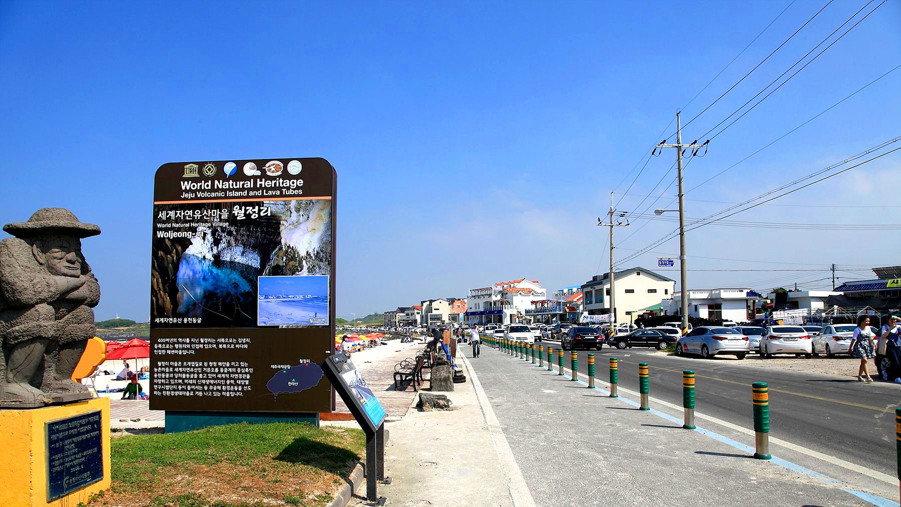 월정리 마을은 조개껍질로 된 청정 해안을 끼고 있는 농촌마을로