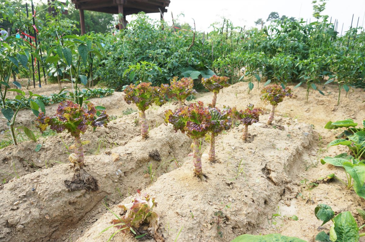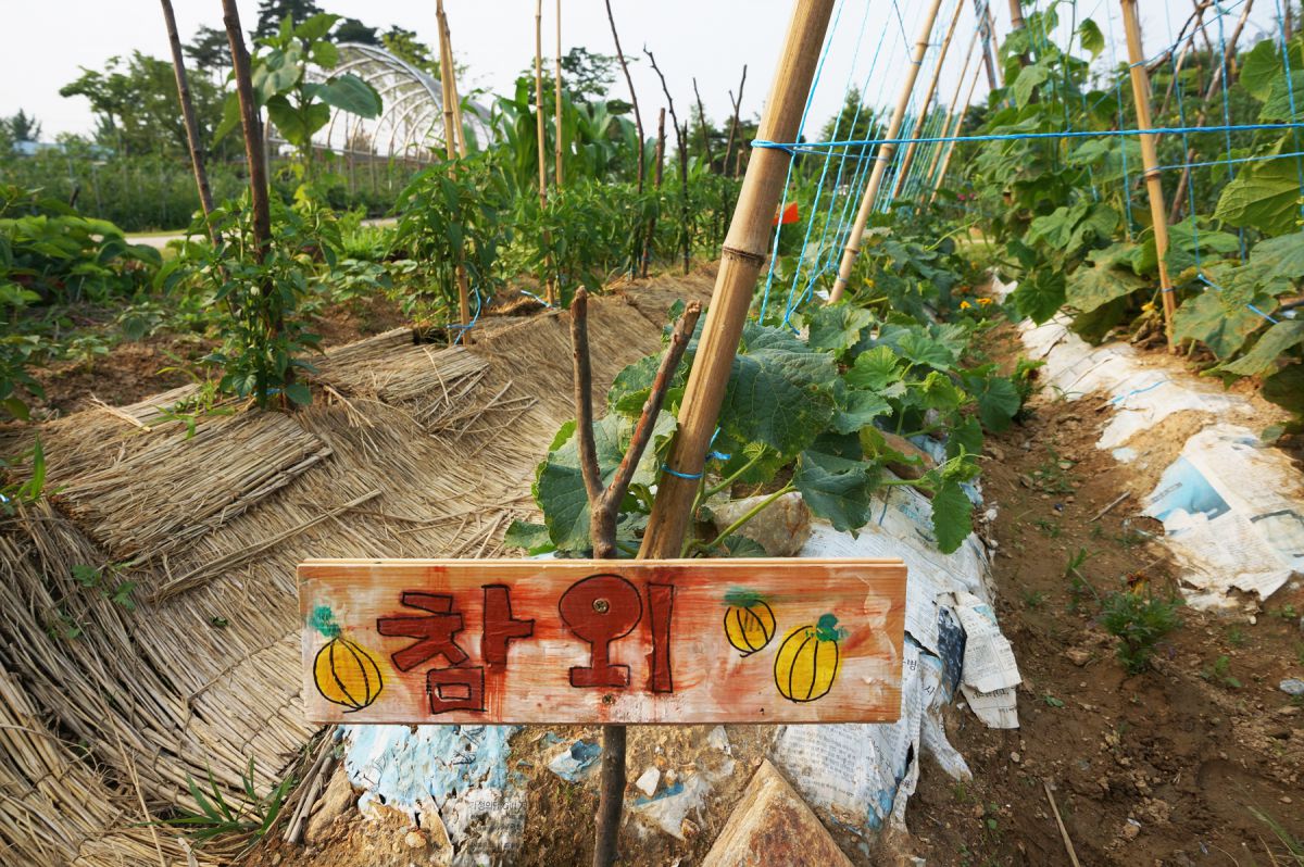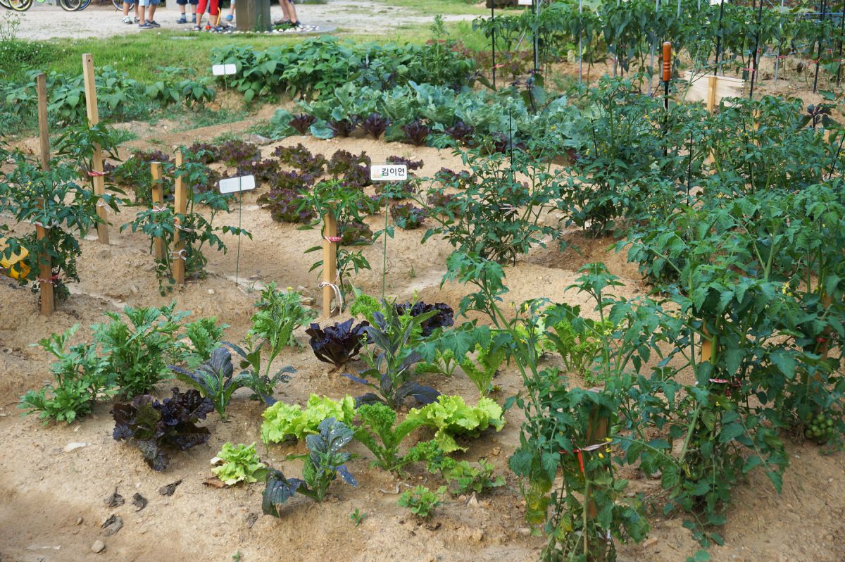 실제로 벼, 고구마, 고추, 배추 등 농작물이 자라고 있고 원두막이 설치되어 있어