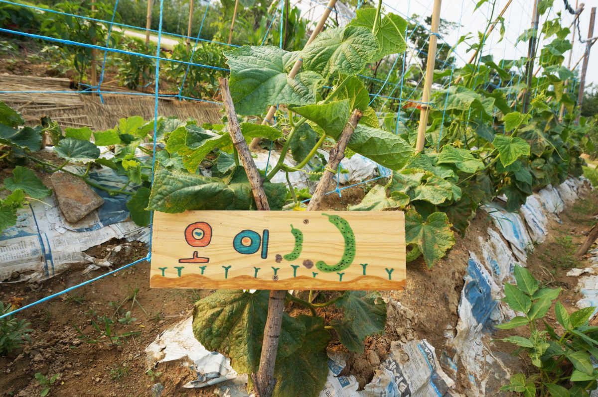 실제로 모종을 심고 가꾸며 농사체험을 하고 있는 체험의 장소라서 밭 곳곳에 이름이 써 있는 팻말이 보입니다.