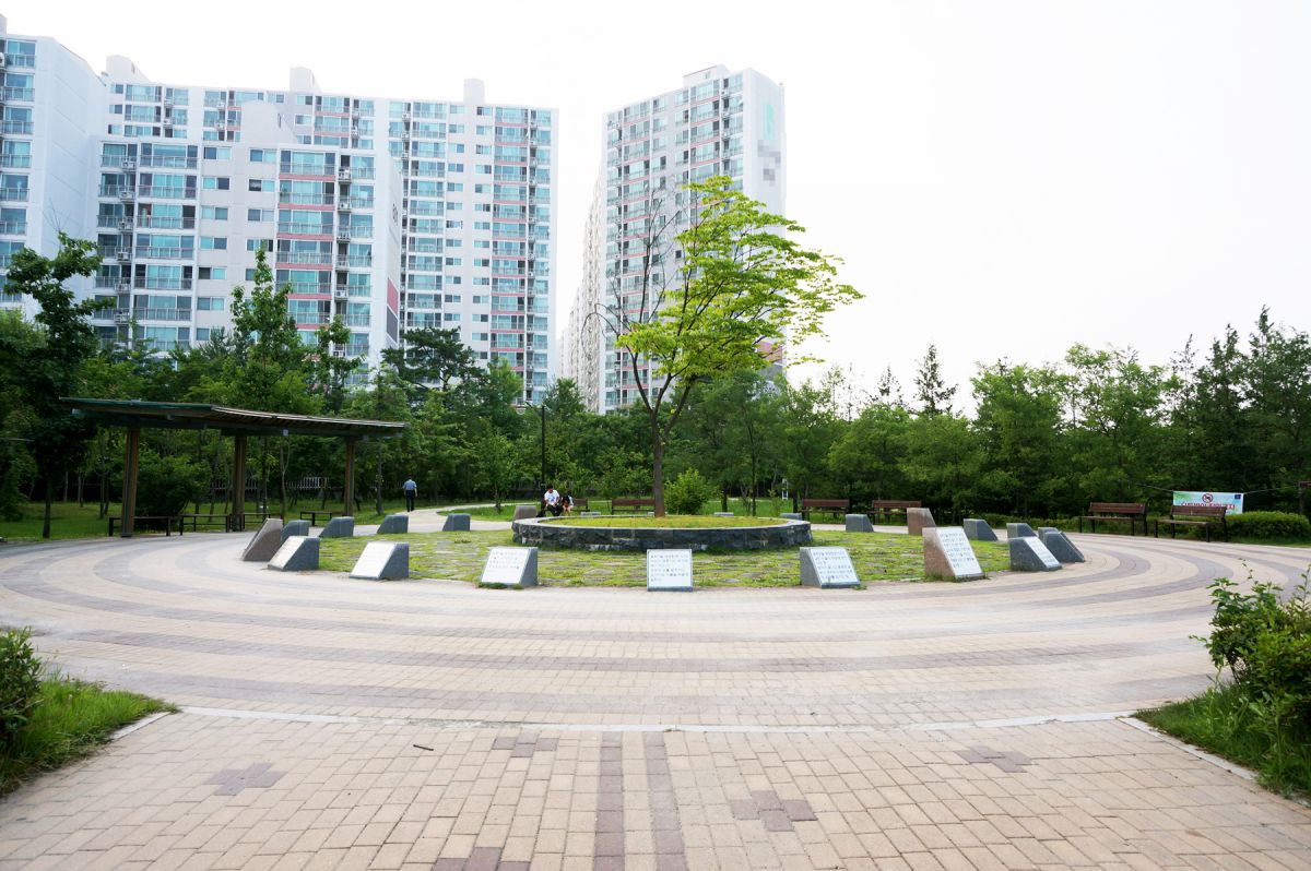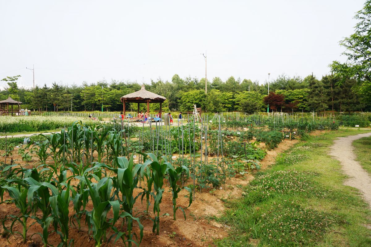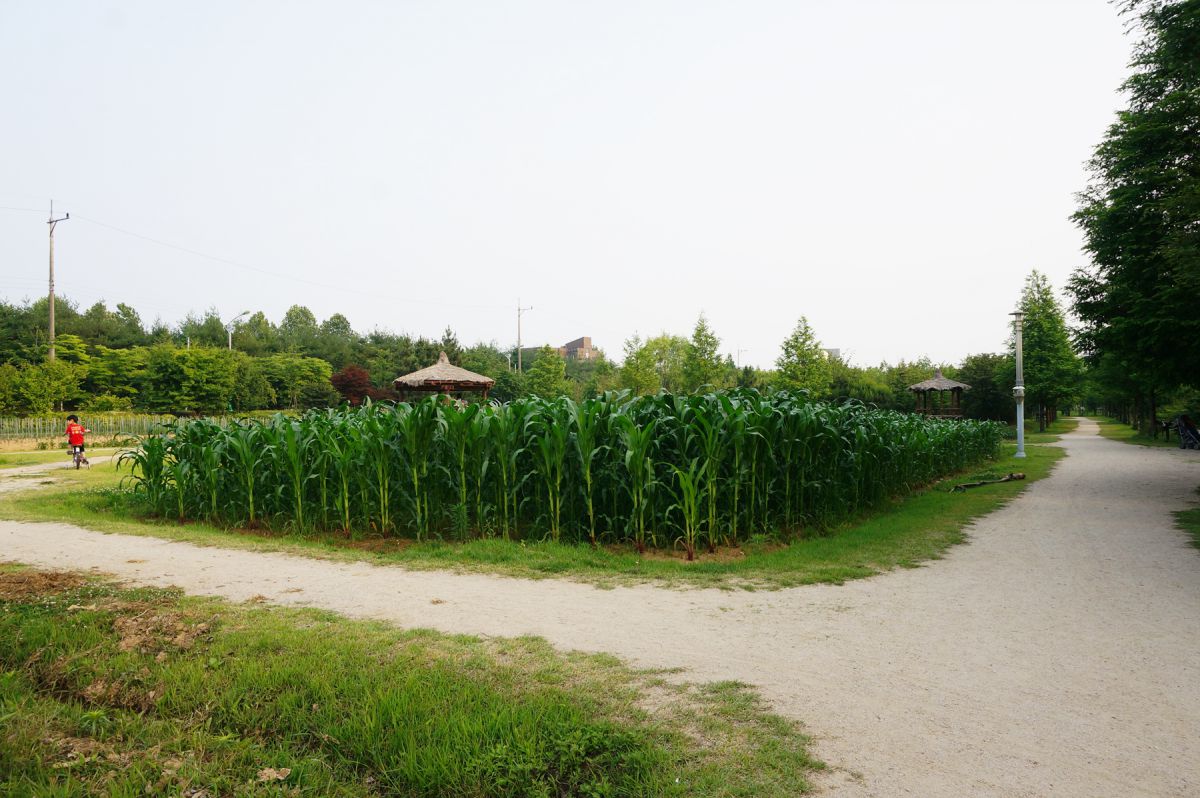 예쁘게 조성된 공원을 걸으며 농작물과 원두막이 주는 시골의 정취를 느낄 수 있는