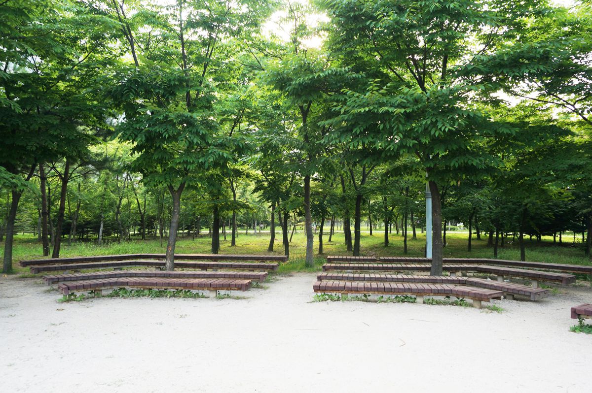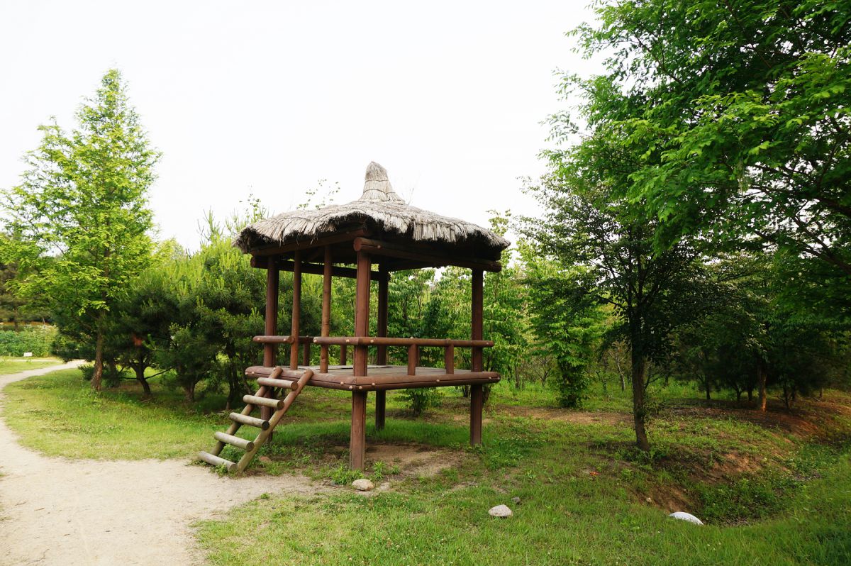 공원 곳곳에 쉴 수 있는 의자가 많이 마련되어 있고 원두막도 있어서 시골의 정취와 풍경을 감상하며
