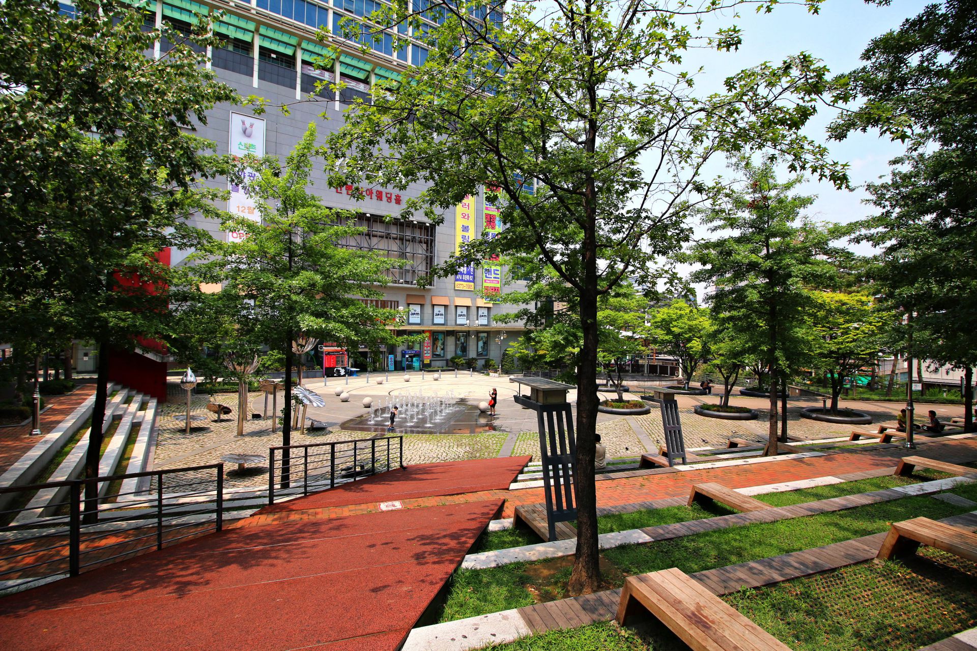 실용적인 아이디어로 설치물은 물론이고, 분수까지 더 멋스러움을 더해주는 공원입니다.