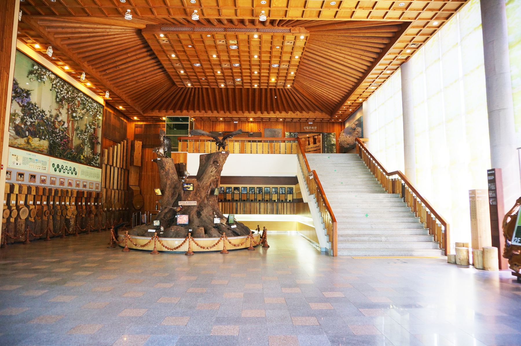 국립 산림 박물관 내부는 국산 잣나무와 낙엽송을 활용하여 지어졌습니다.