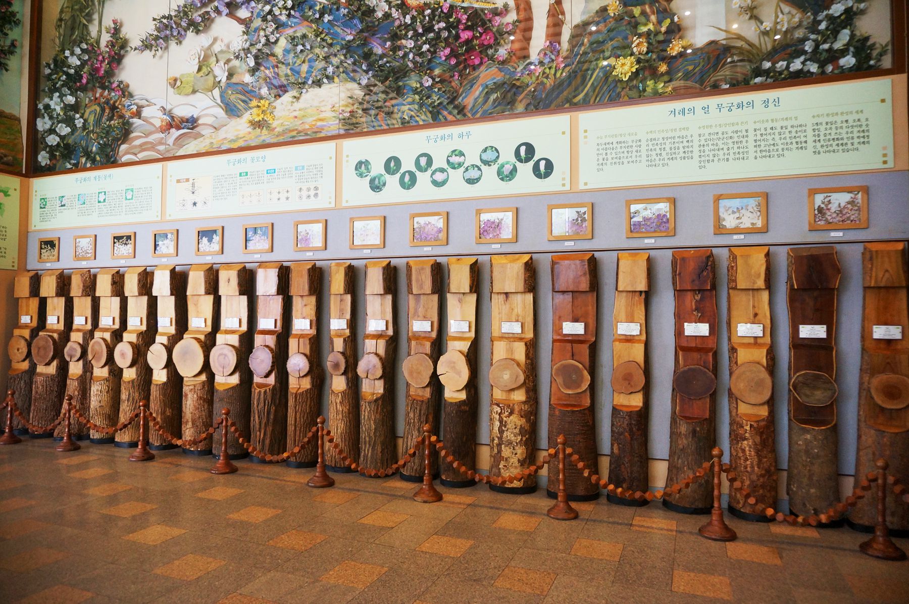 1층 전시실에는 다양한 종류의 목재들이 다양하게 전시되어 있습니다.