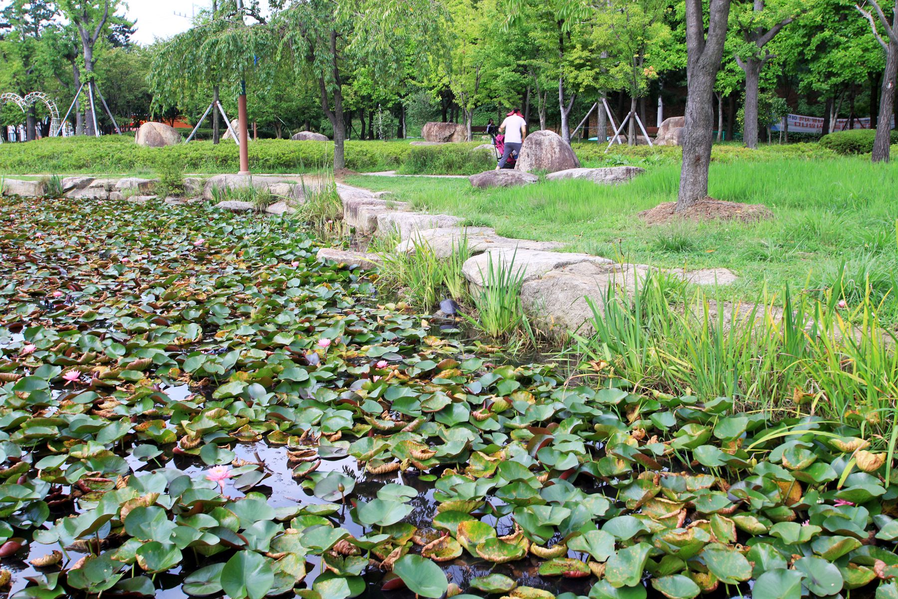 공원의 관리가 비교적 잘되고 있어 연못에서는 개구리와 거북이같은
