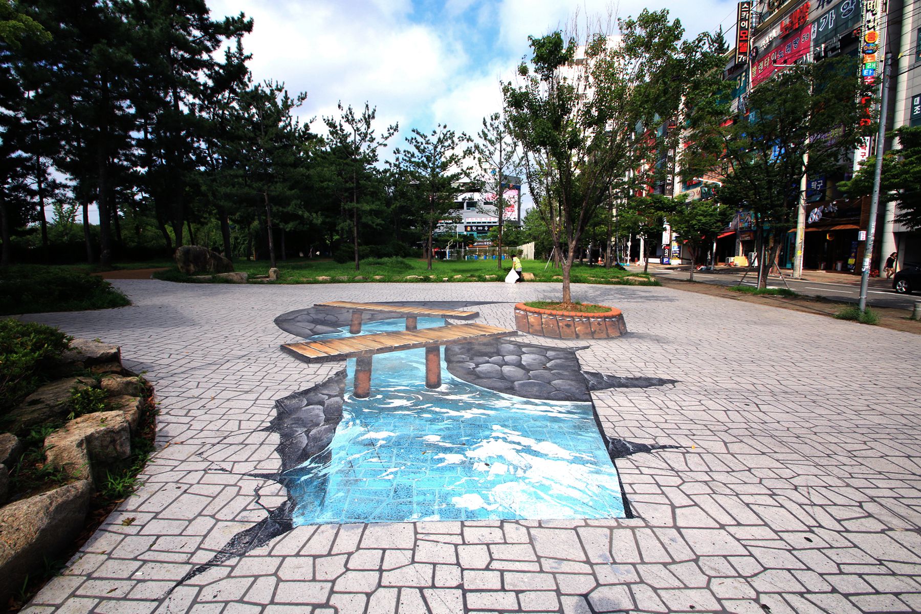 광장에는 착시효과를 주는 트릭아트 그림이 그려져있으며,