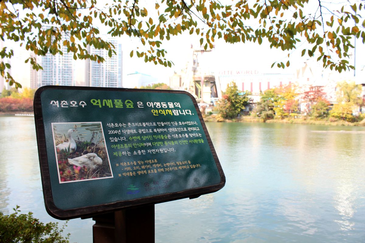 석촌호수를 둘러싸고 있는 억새풀 숲은 야생동물의 안식처로