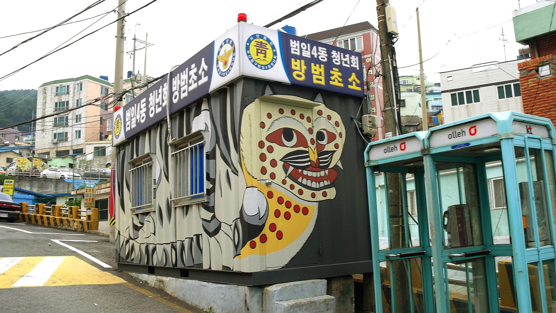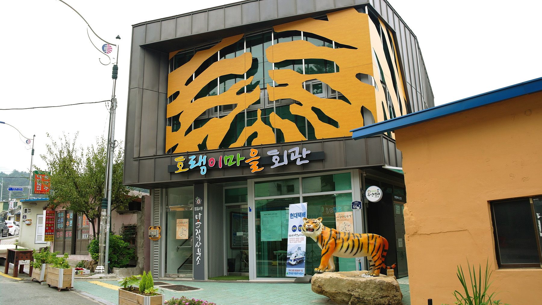 마을회관의 모습도 호랑이 무늬 패턴으로 장식되어 있어 이색적인 풍경을 연출합니다.