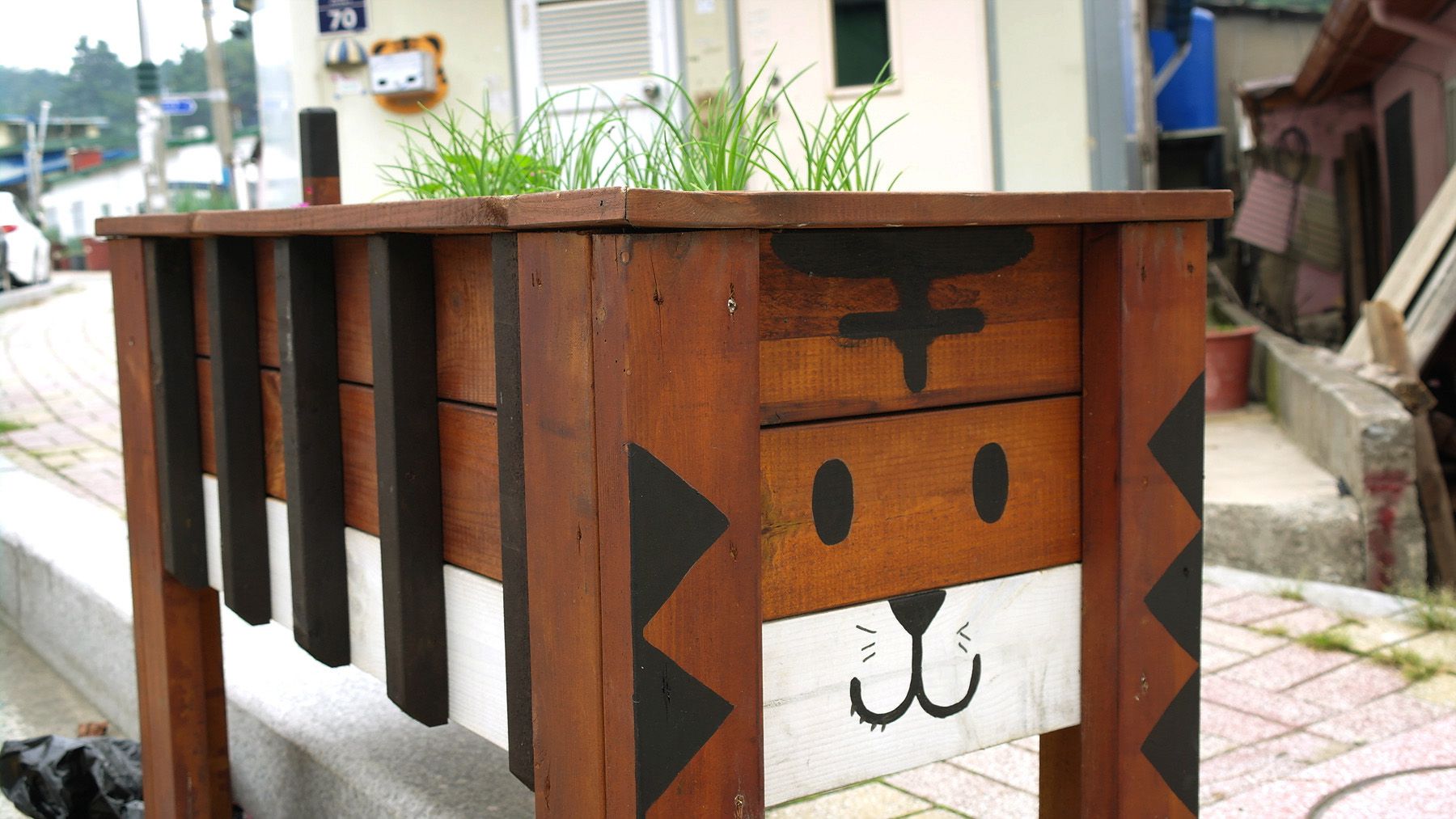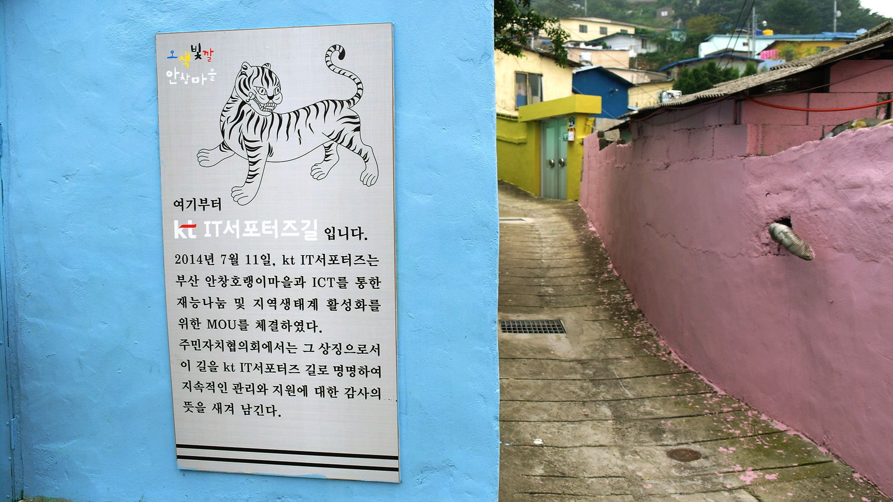 호랭이 마을의 좁은 골목길이 알록달록 색깔 옷을 입고 생동감이 가득한 길로 바뀌었습니다.