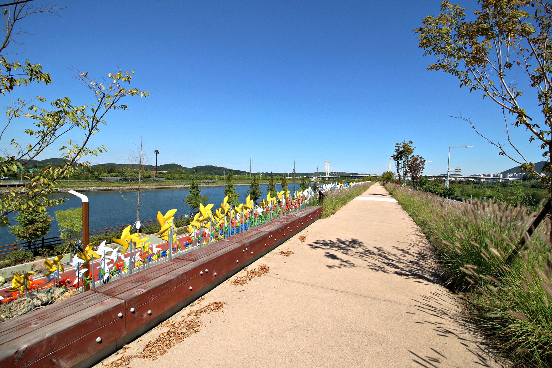 시원하게 불어오는 바람과, 아라뱃길의 멋스러운 풍경을 벚 삼아 산책을 즐기는 것도 좋습니다.