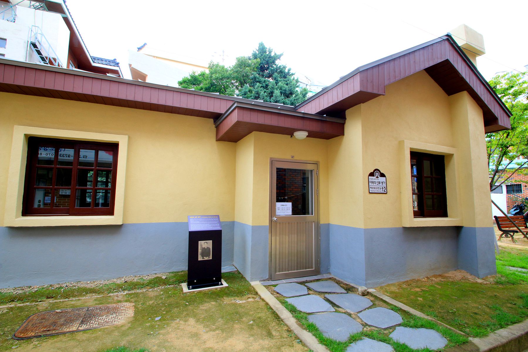 생가에 도착했음을 알리는 벤치.