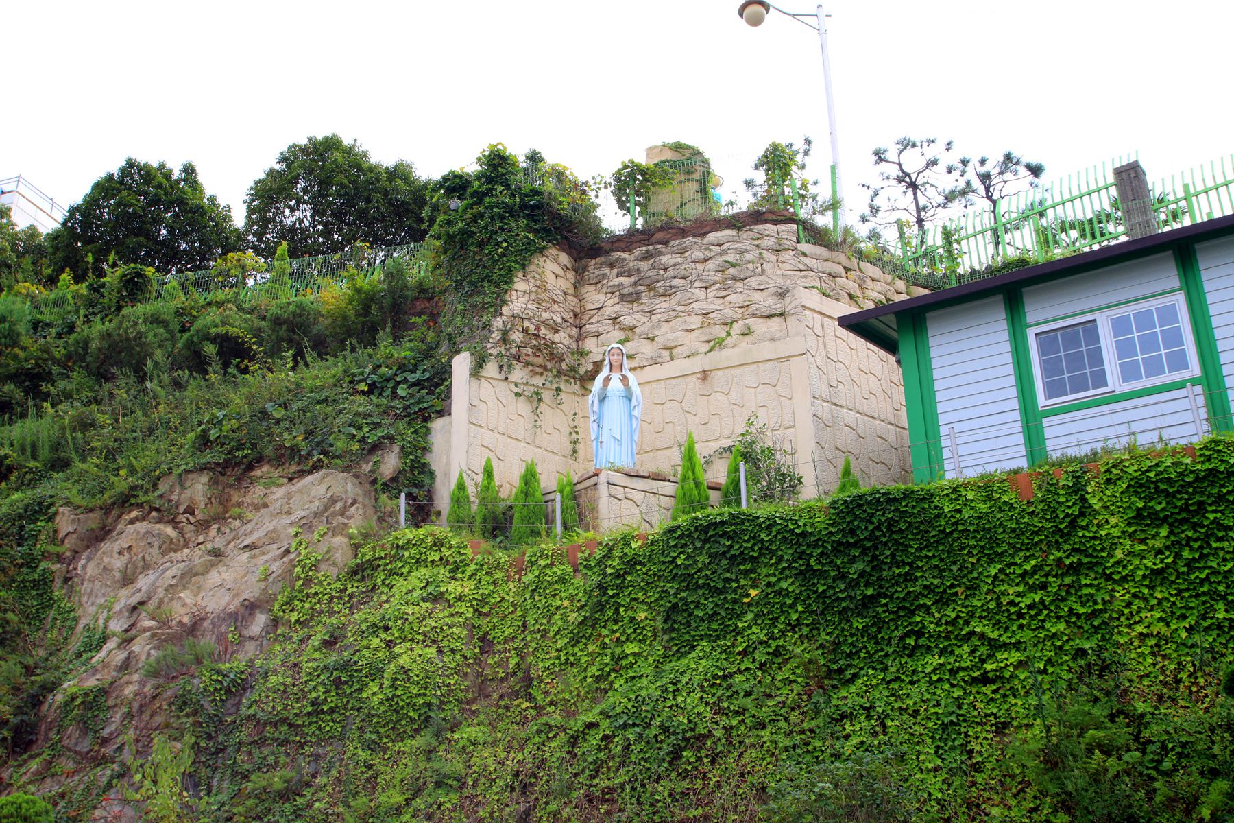 송도성당은 부산에서 바다가 보이는 몇 개의 성당 중 하나로 자갈치 앞바다와 용두산 타워도 볼 수 있습니다.