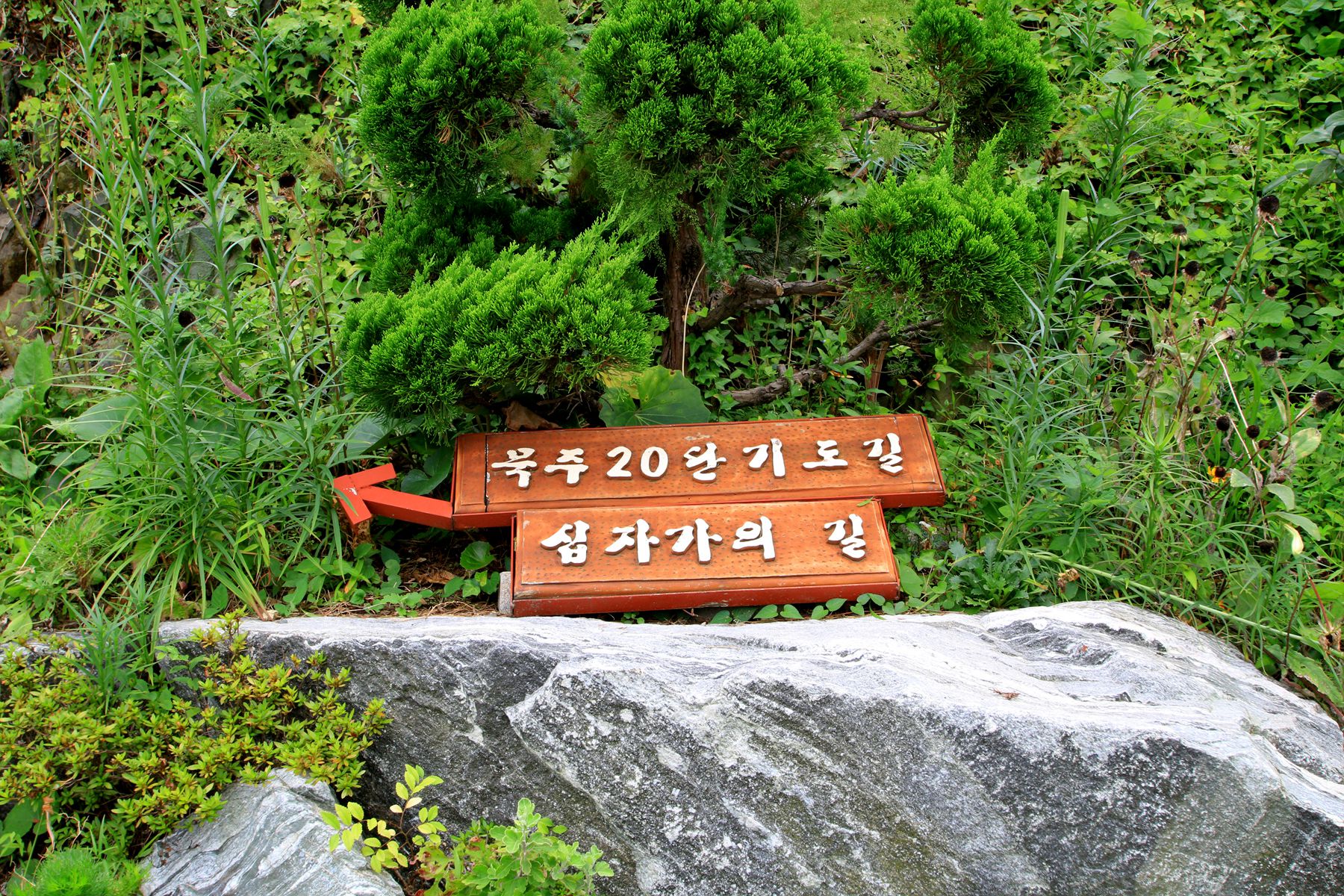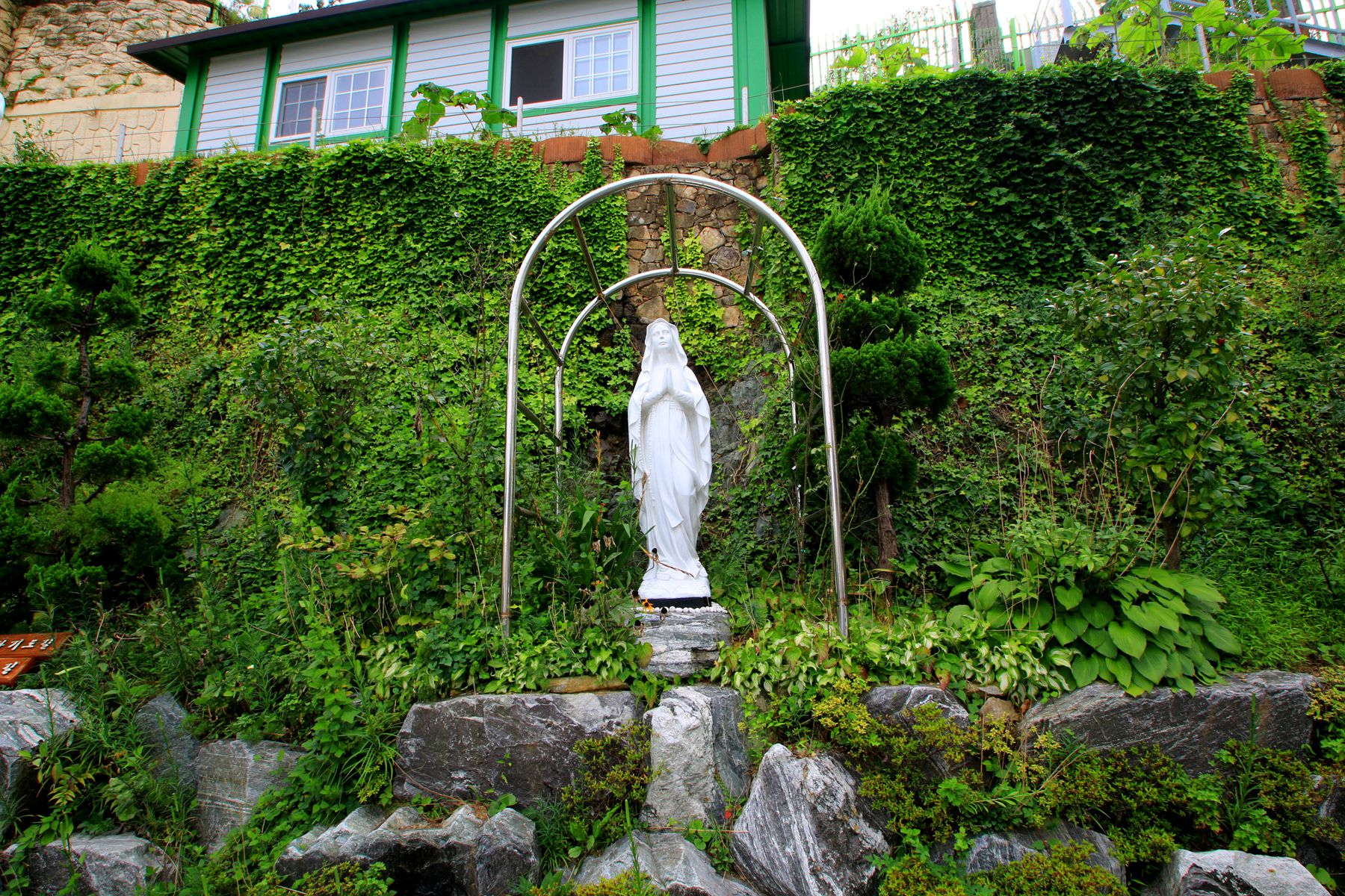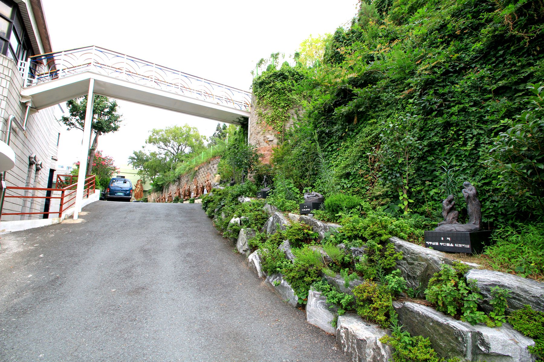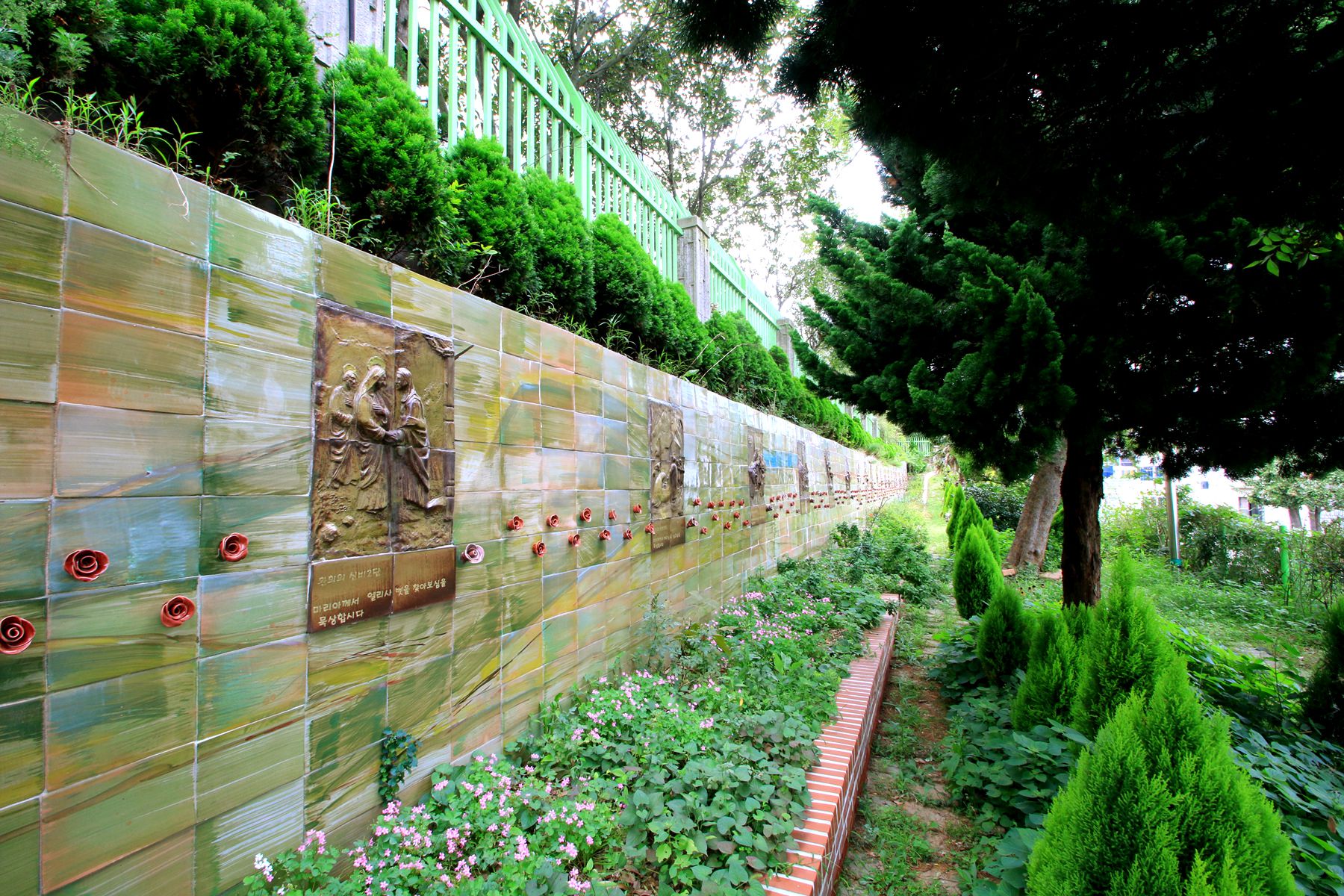 이곳은 묵주기도 동산인데요 화단의 꽃들로 아름답게 꾸며져 있습니다.