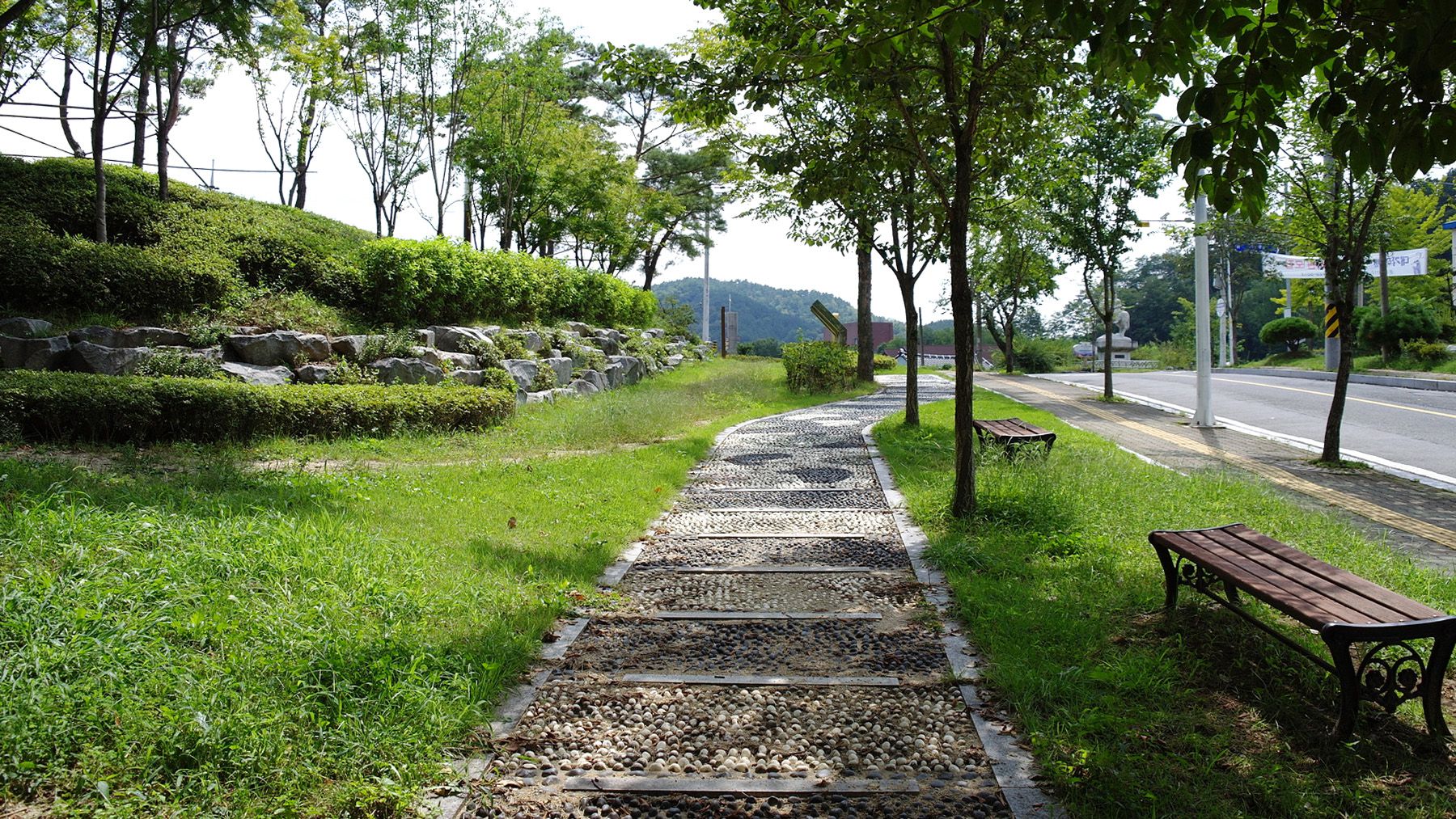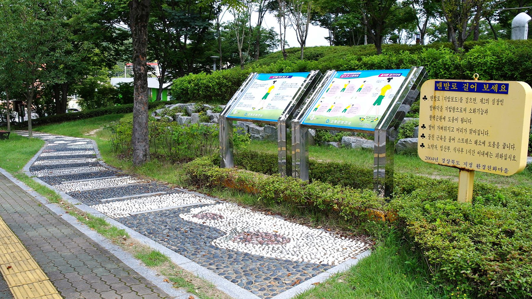 군민들의 소화기능과 혈액순환을 도와주고 뭉친 근육을 풀어주는 지압길도 길게 조성이 되어 있습니다.