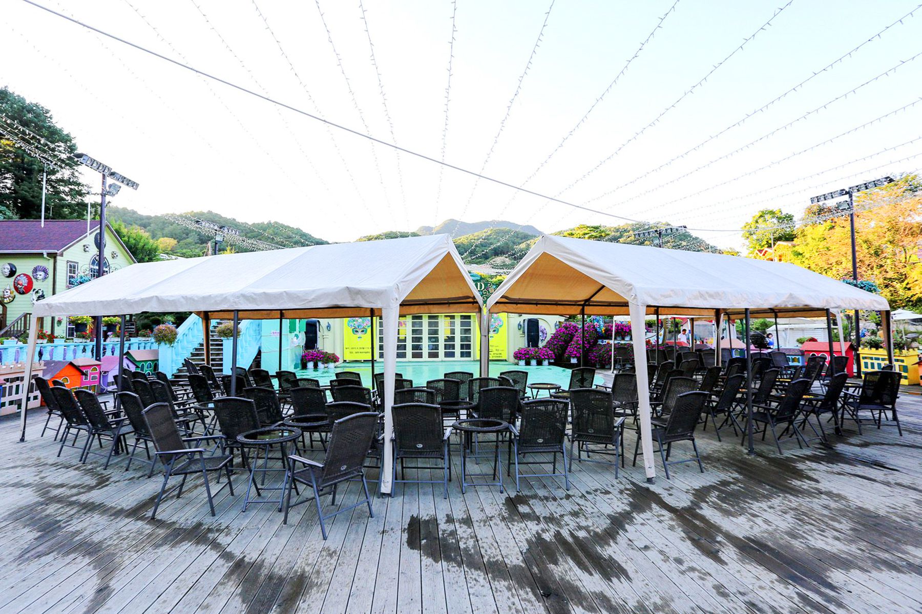 밤에는 정원에 둘러져있는 전구에 불이 켜져서 정말 아름답습니다.
