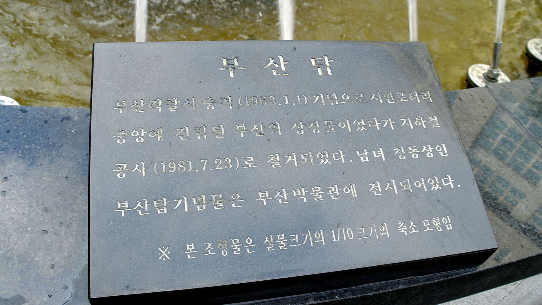 남녀 청동상인 기념물은 부산박물관에 전시되어 있으며, 서면 문화로에 설치되어 있는 탑은 실물의 1/10의 크기로 축소한 모형입니다.