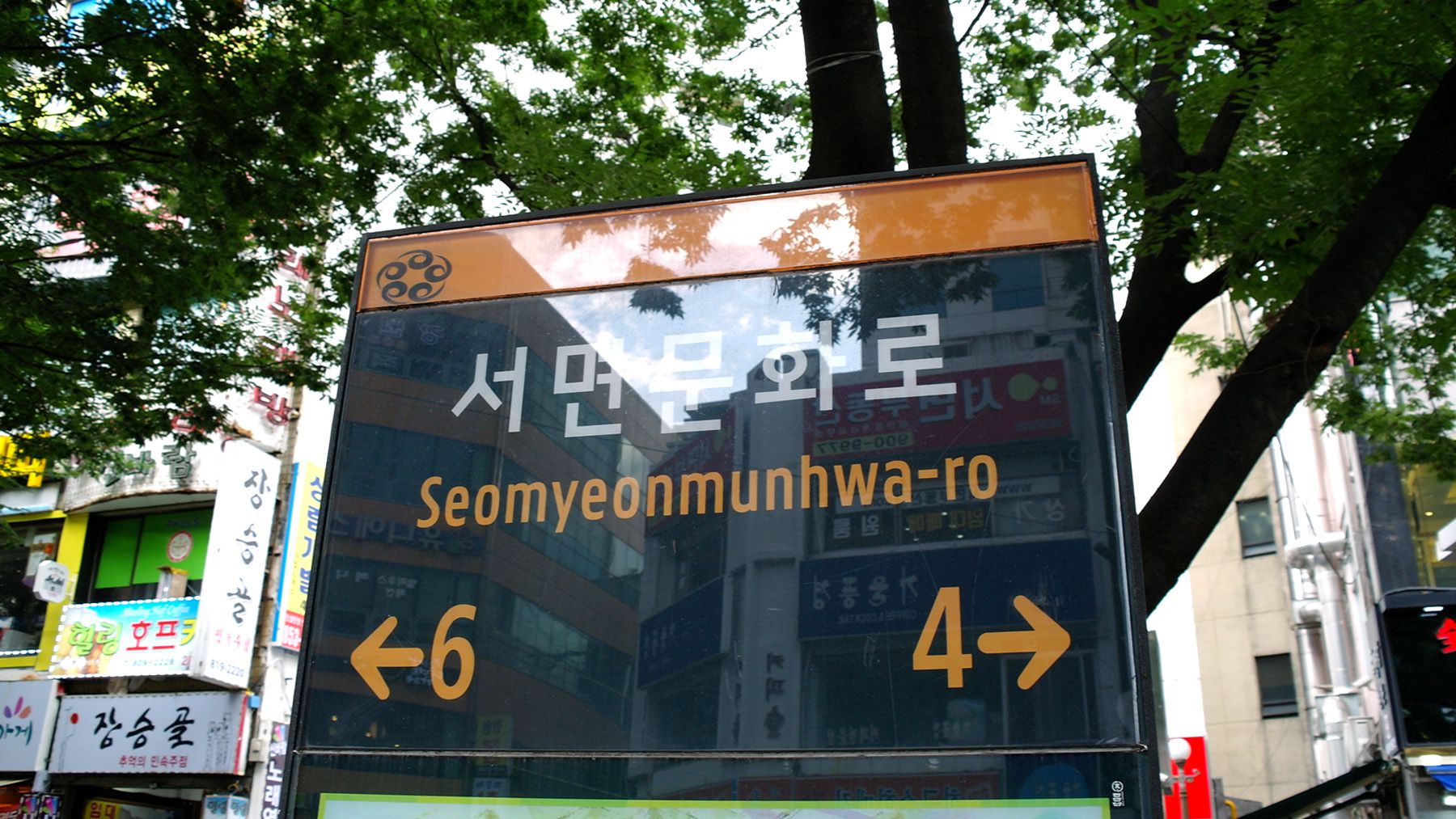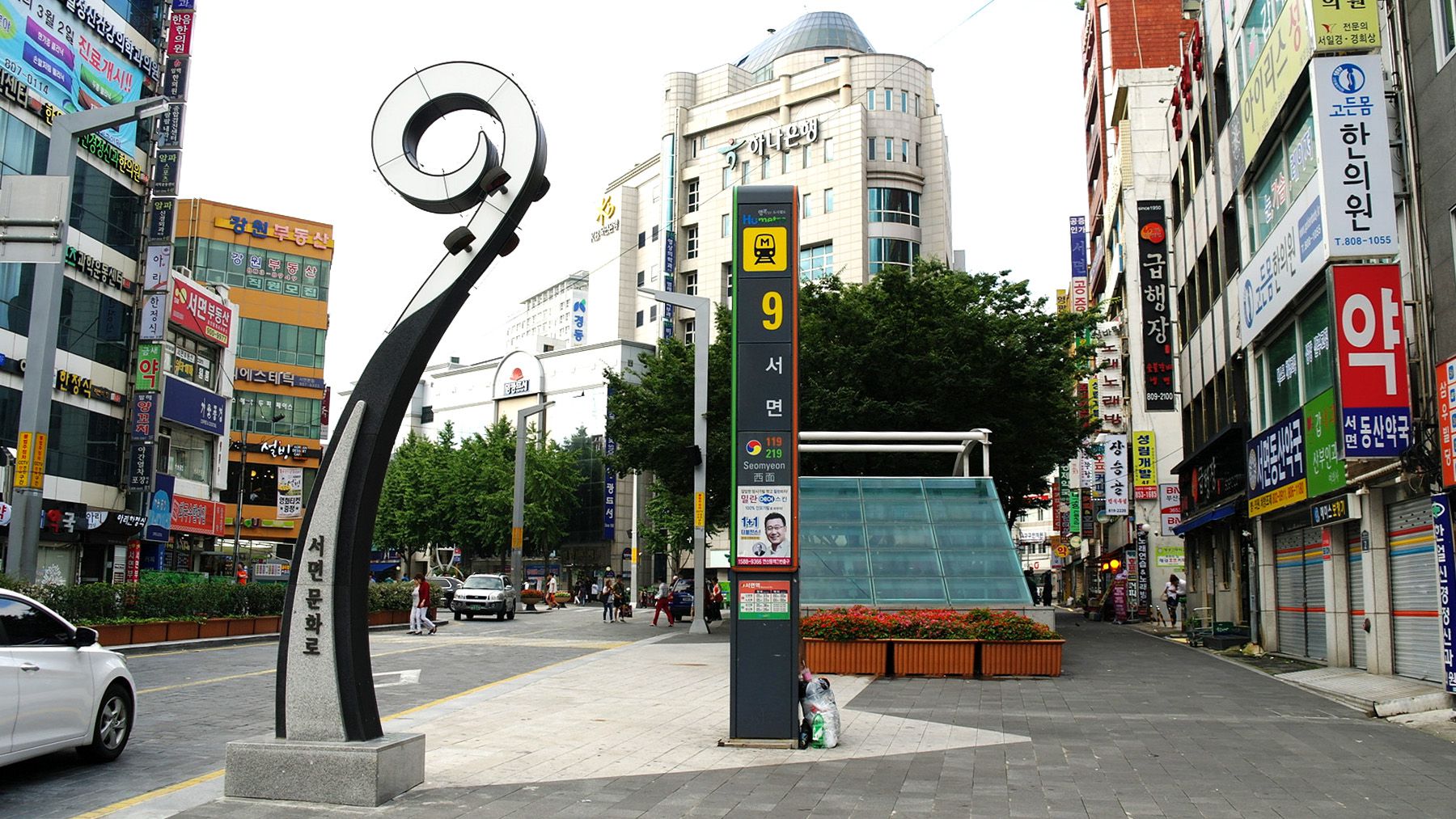 부산 서면역 9번출구로 나오면 부산진구청, 부산시민공원 방면으로 서면 문화로가 조성되어 있습니다.