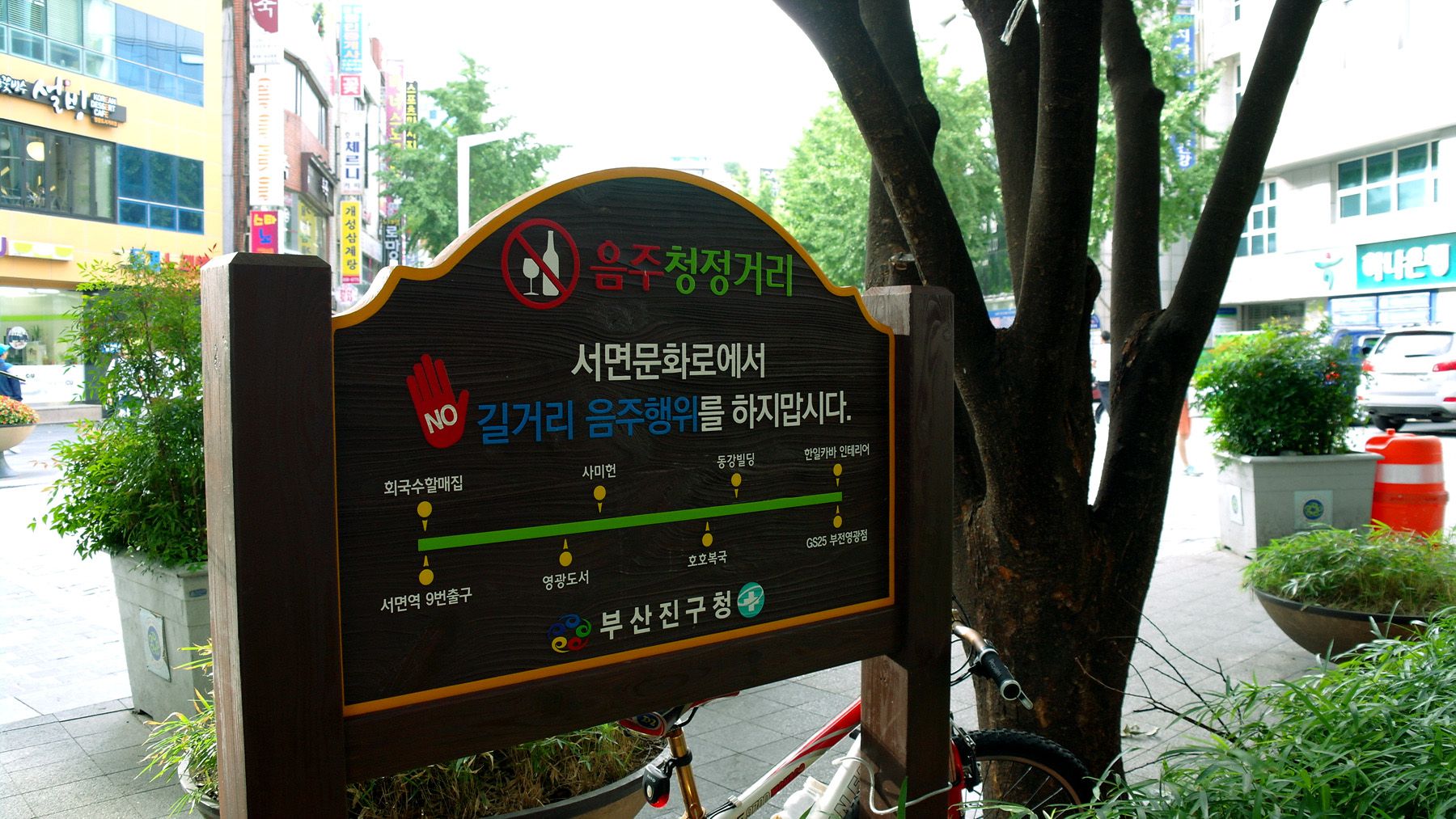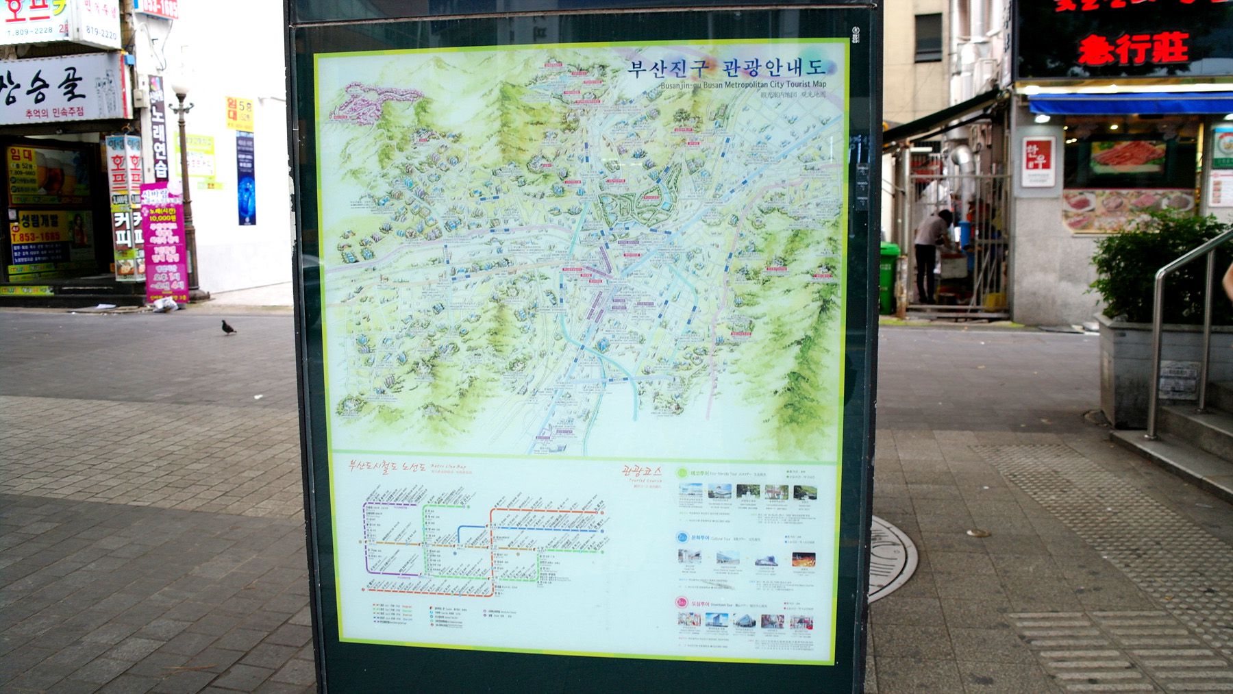 문화로 입구에 부산 진구 관광 안내도와 표지판이 설치되어 있어 여행객들에게 편리함을 제공해 주고 있습니다.