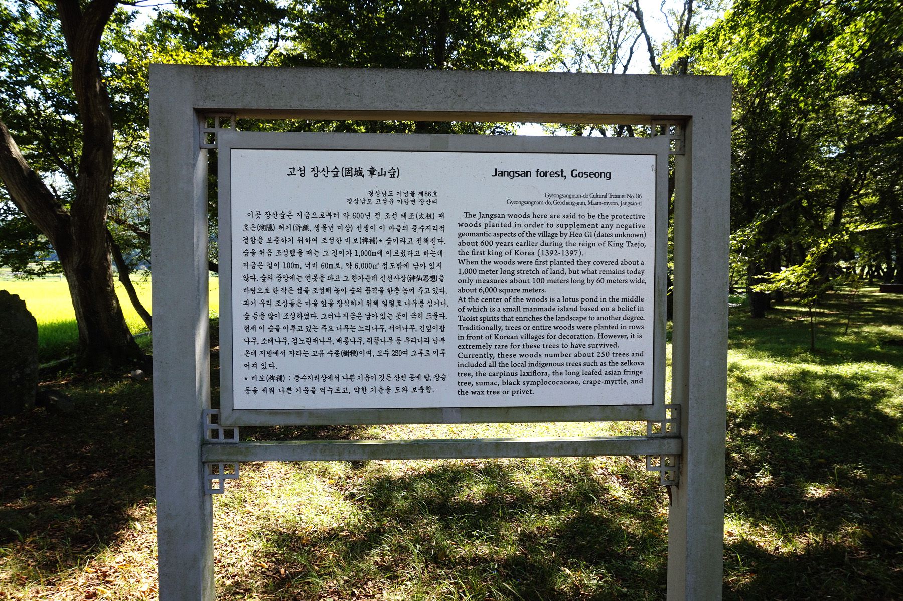 고성 장산숲은 경상남도 기념물 제 86호로 지정되어 관리되고 있는 곳입니다.